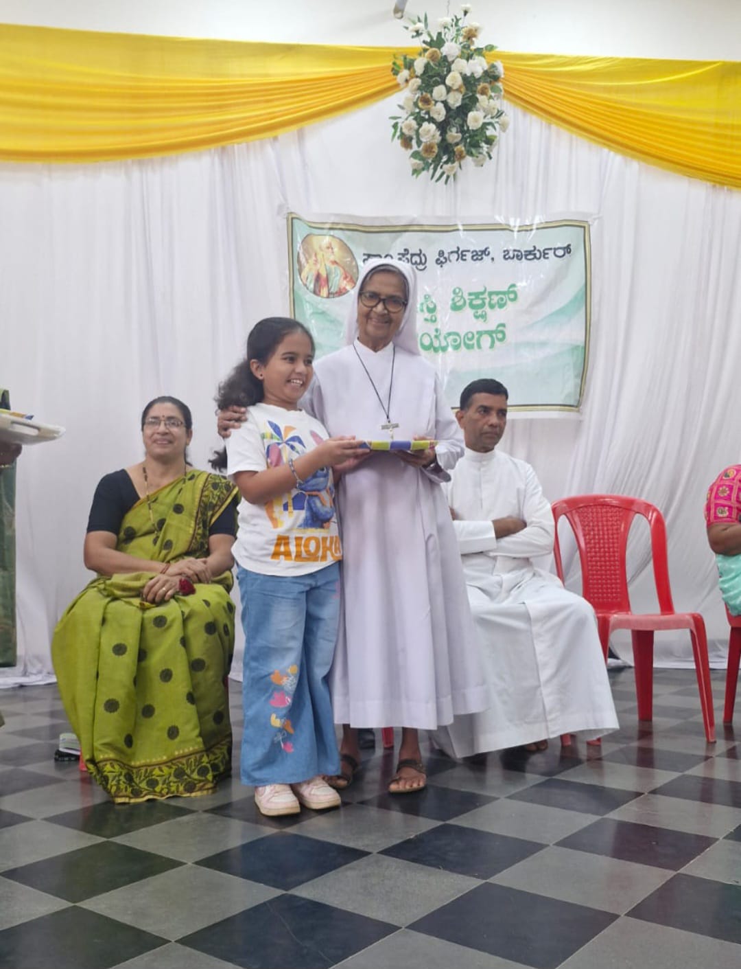 Prizes were distributed to children who secured first, second, and third places in each Catechism class, as well as to those who achieved cent percent attendance throughout the year. A special honour was accorded to parishioner Loyal Passanha, who achieved a commendable 87% in the Udupi Diocese's Catechism public examination.