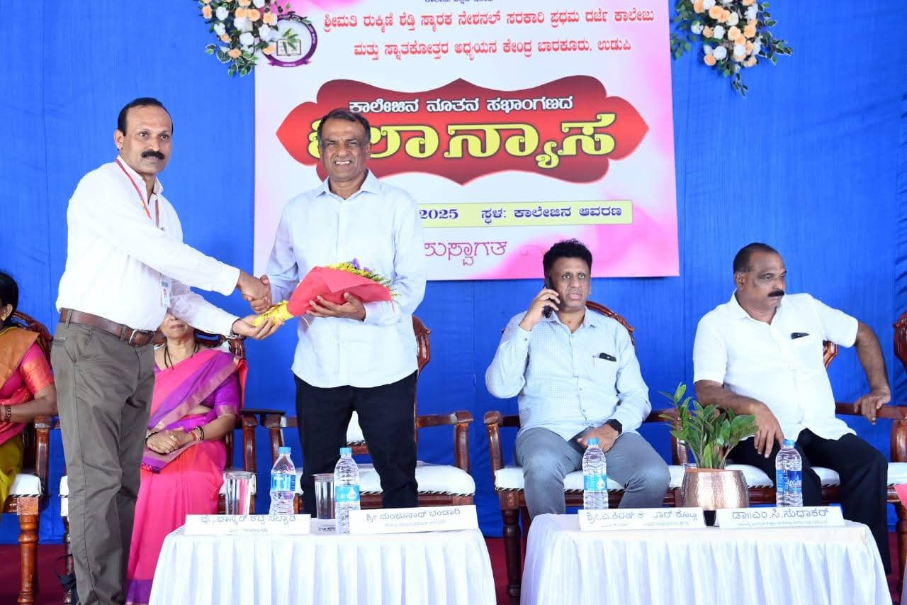The foundation stone ceremony for the new auditorium at Srimati Rukmini Shedti Memorial National Government First Grade College and Postgraduate Research Centre in Barkur was held today.