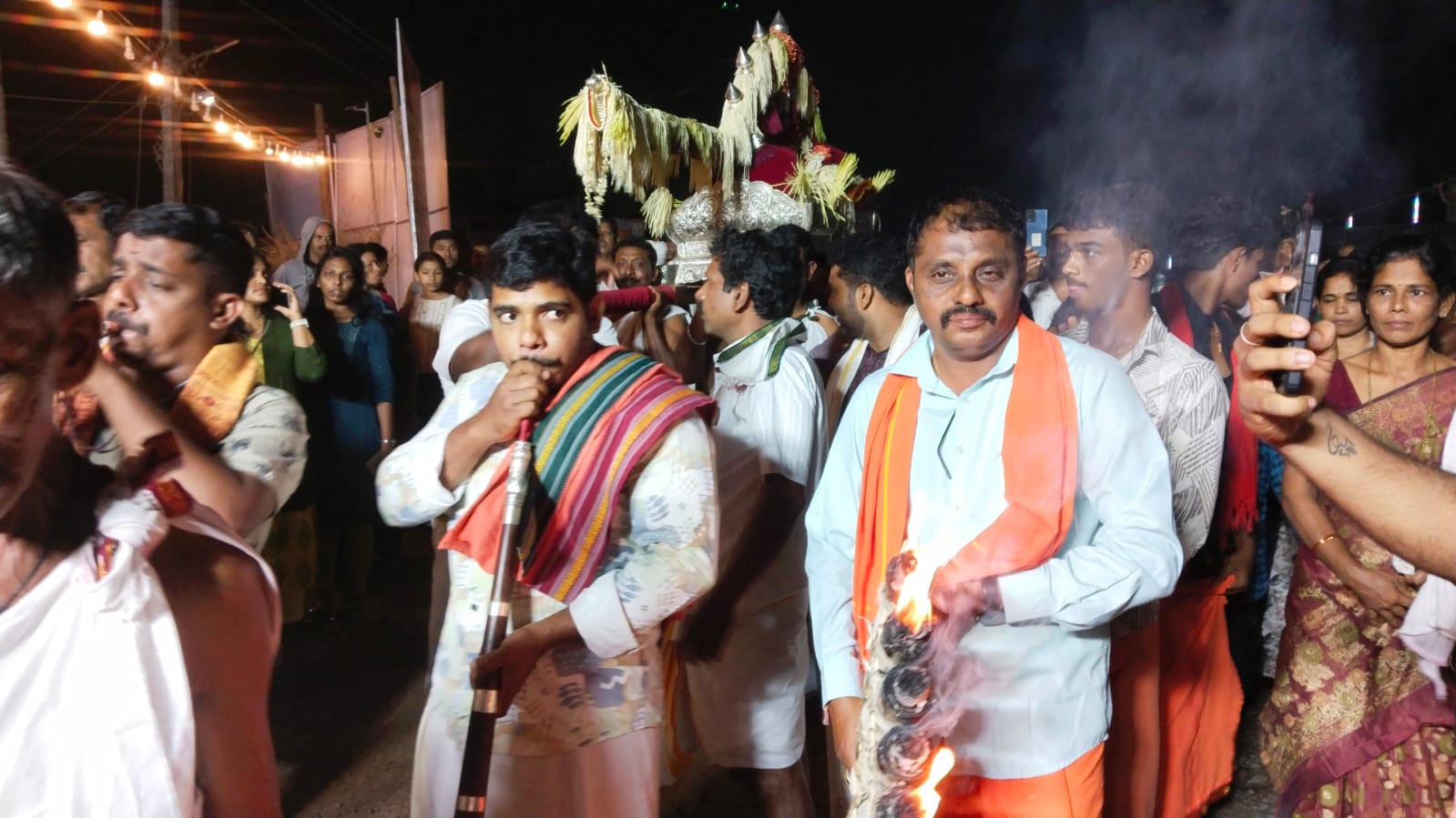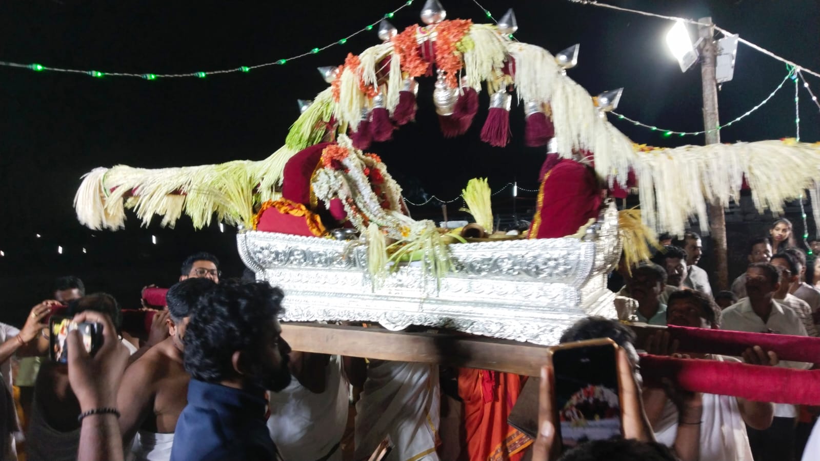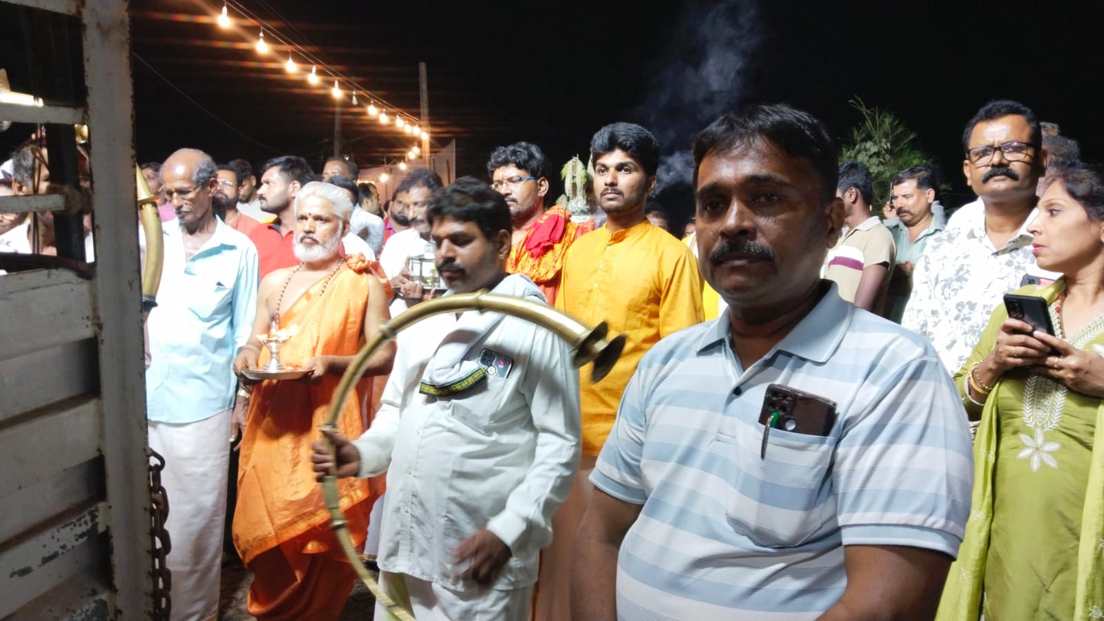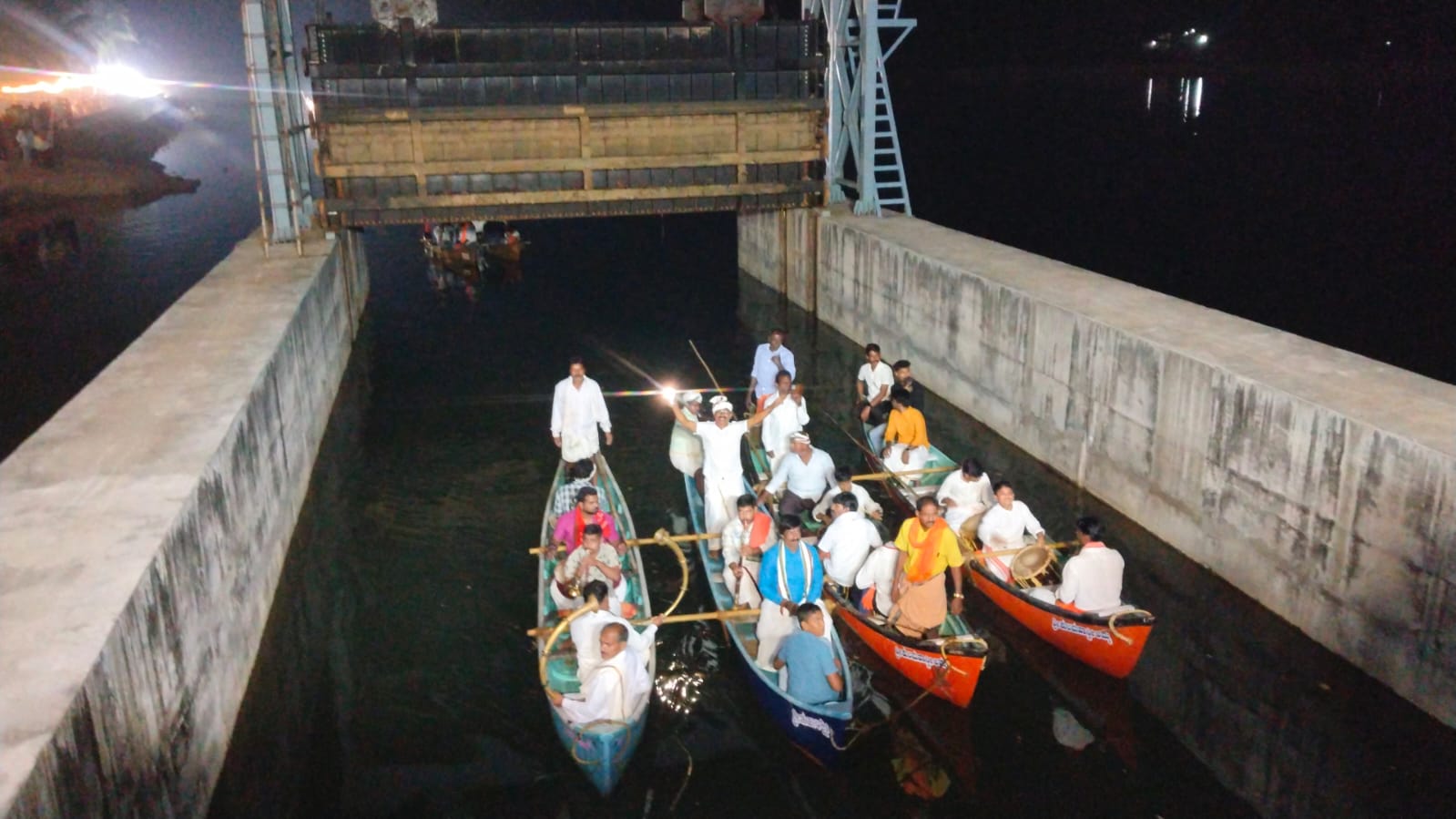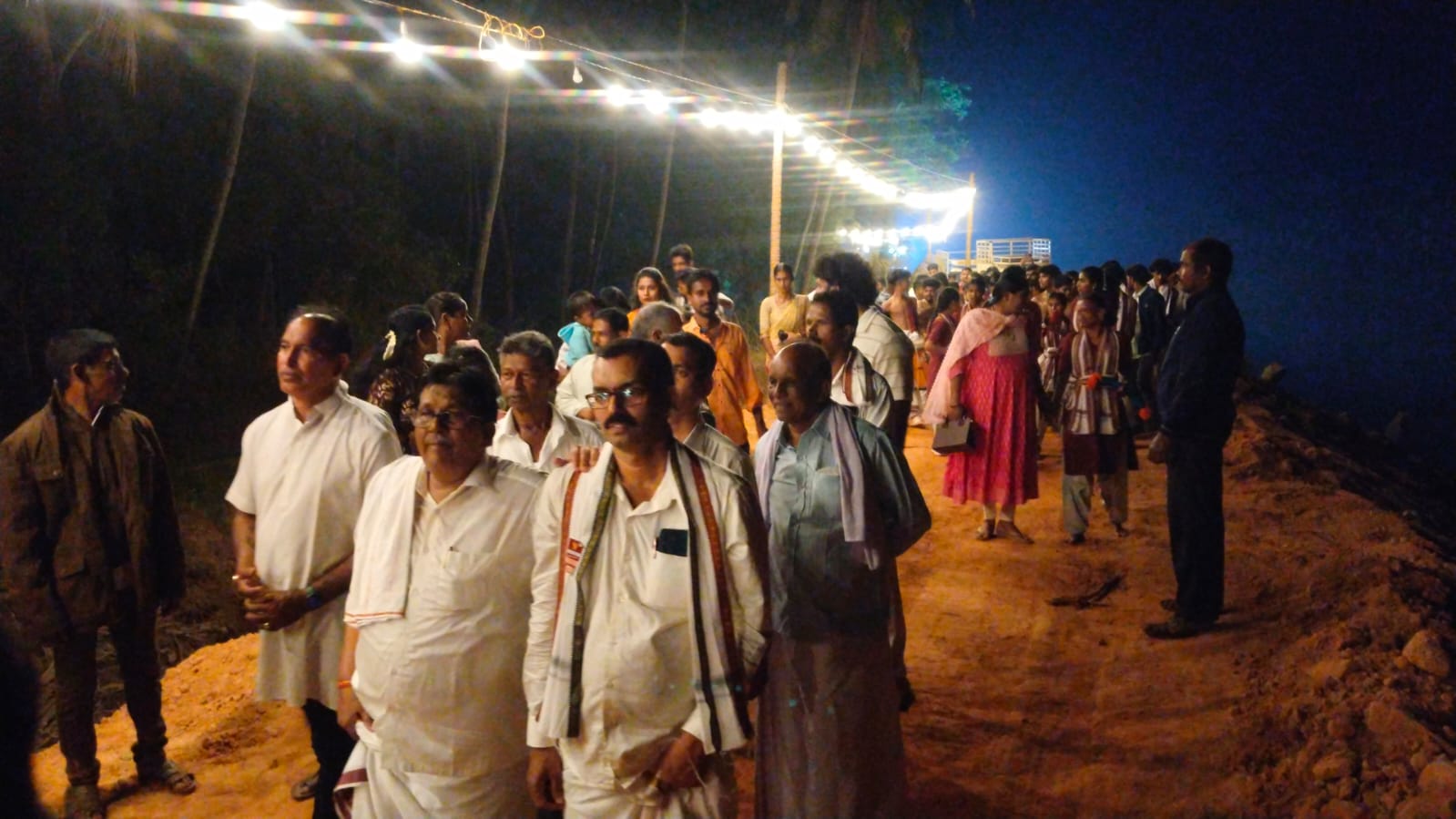 The magnificent procession around the island featured renowned bhajan groups from across the district performing devotional dances, accompanied by the thunderous sounds of traditional drums and musical instruments. The celebration included an impressive display of fireworks, captivating puppet performances, and spectacular martial arts demonstrations.