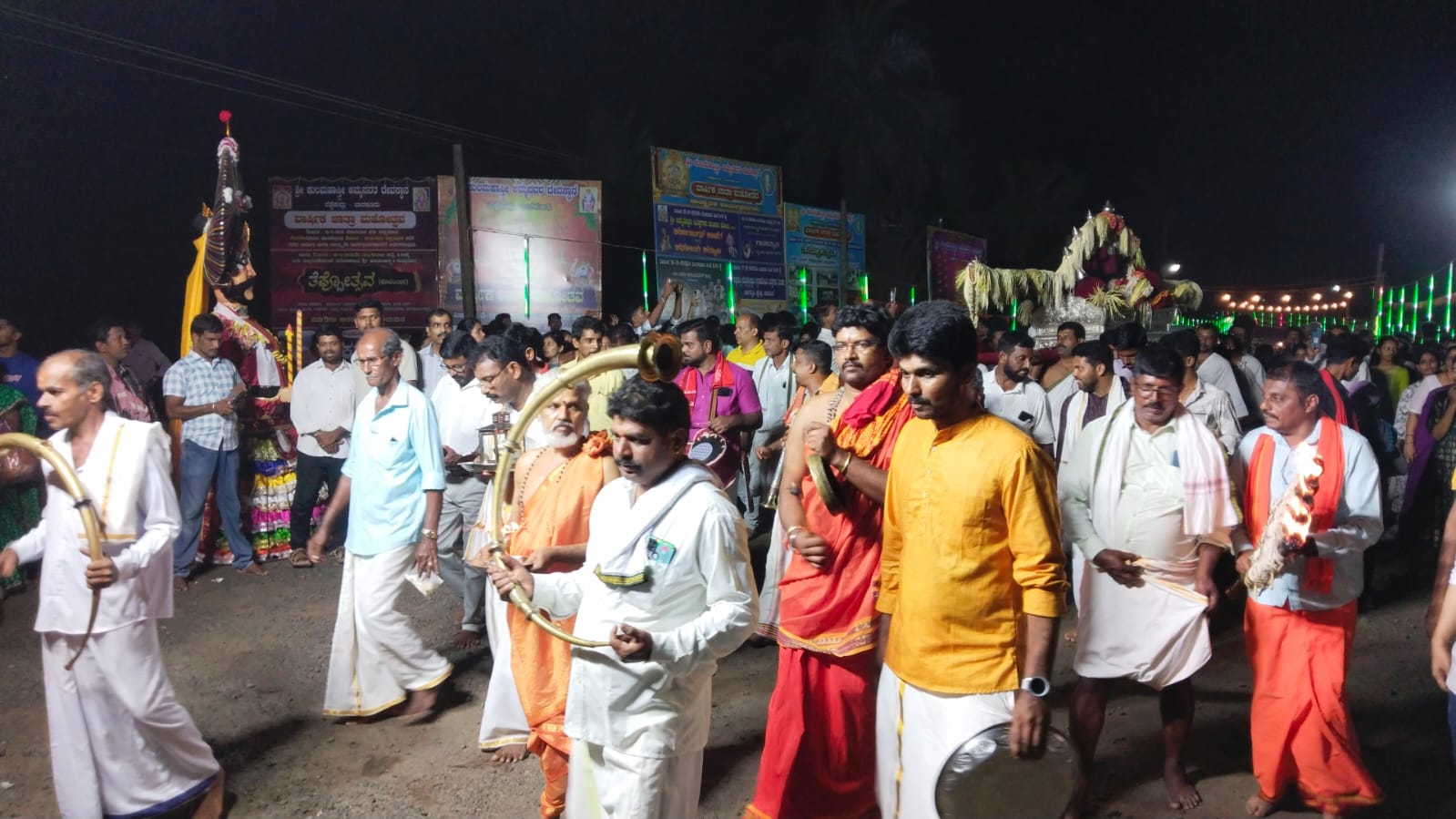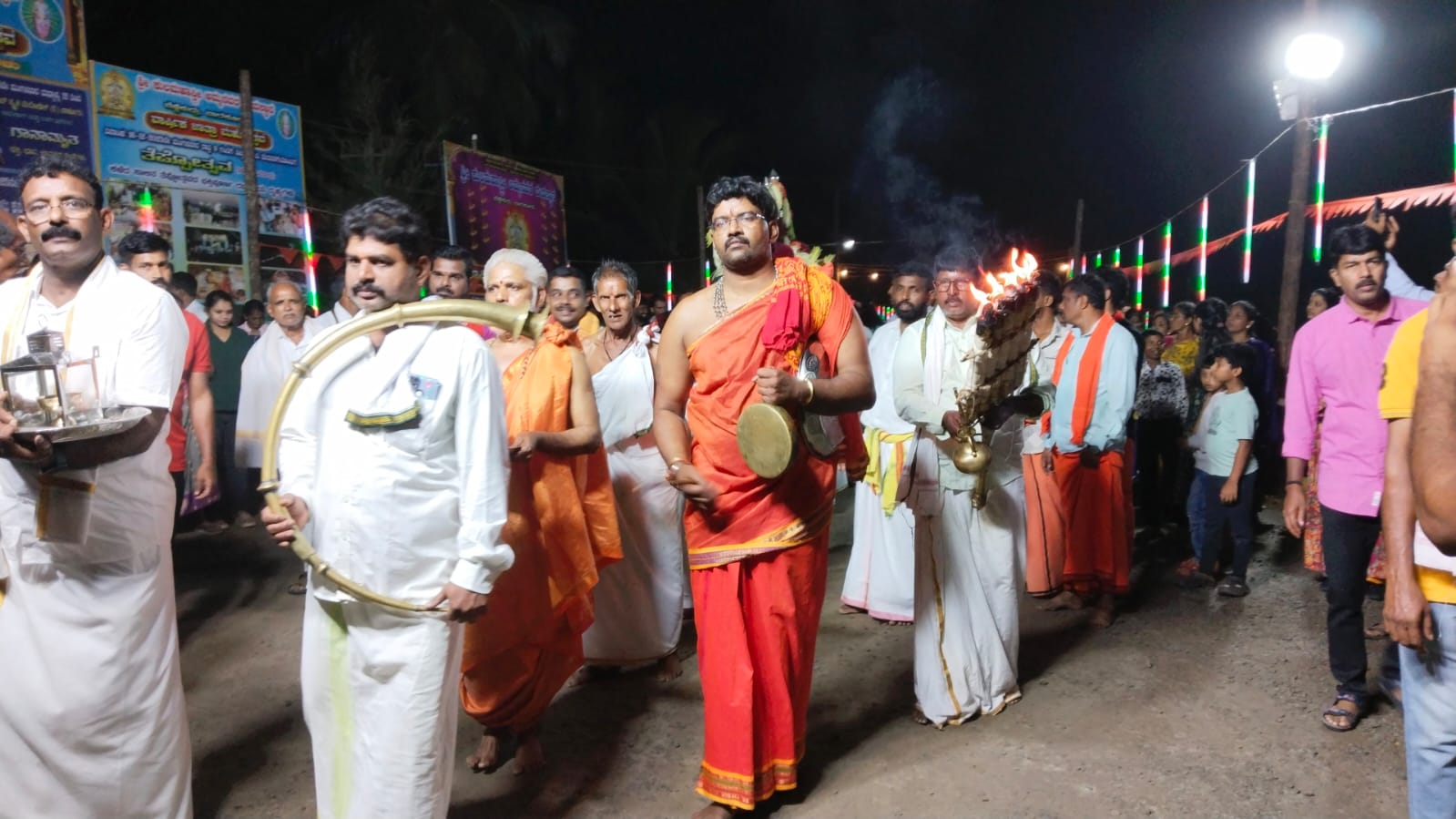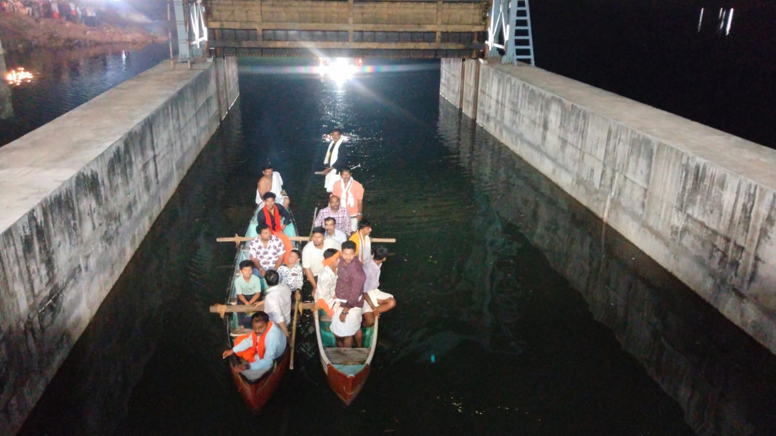 Thousands of devotees gathered to participate in the Holeyaana (River procession), which traversed a 5-kilometer route through the River around Benne Kudru Island. The procession made its way in a circumambulatory path around the island in specially decorated boats, culminating at the sacred presence of Sri Kula Mahastri Amma. There, the palanquin was carried around the temple sanctum nine times, symbolizing deep reverence and devotion.