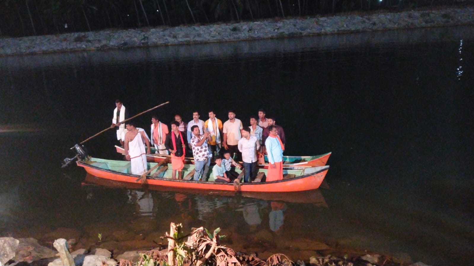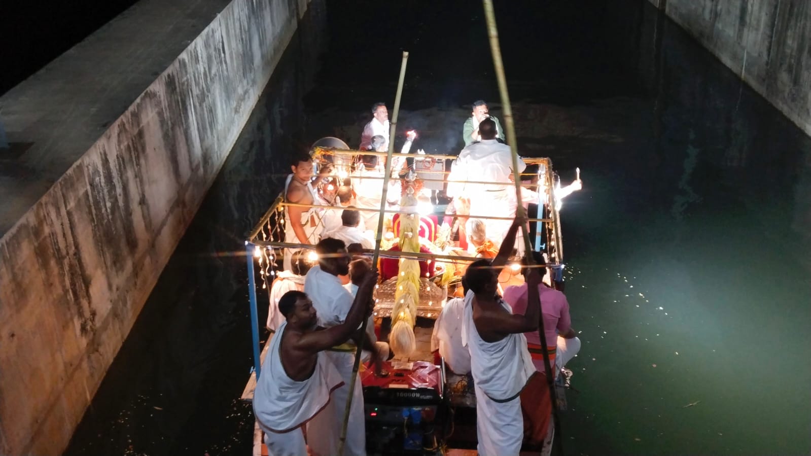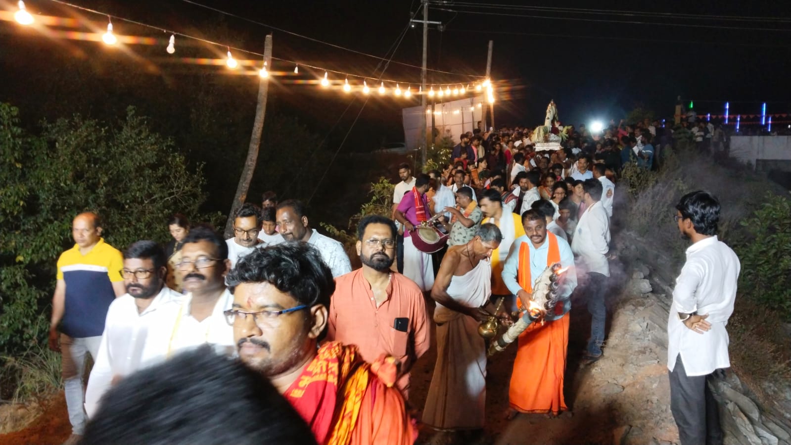 Thousands of devotees gathered to participate in the Holeyaana (River procession), which traversed a 5-kilometer route through the River around Benne Kudru Island. The procession made its way in a circumambulatory path around the island in specially decorated boats, culminating at the sacred presence of Sri Kula Mahastri Amma. There, the palanquin was carried around the temple sanctum nine times, symbolizing deep reverence and devotion.