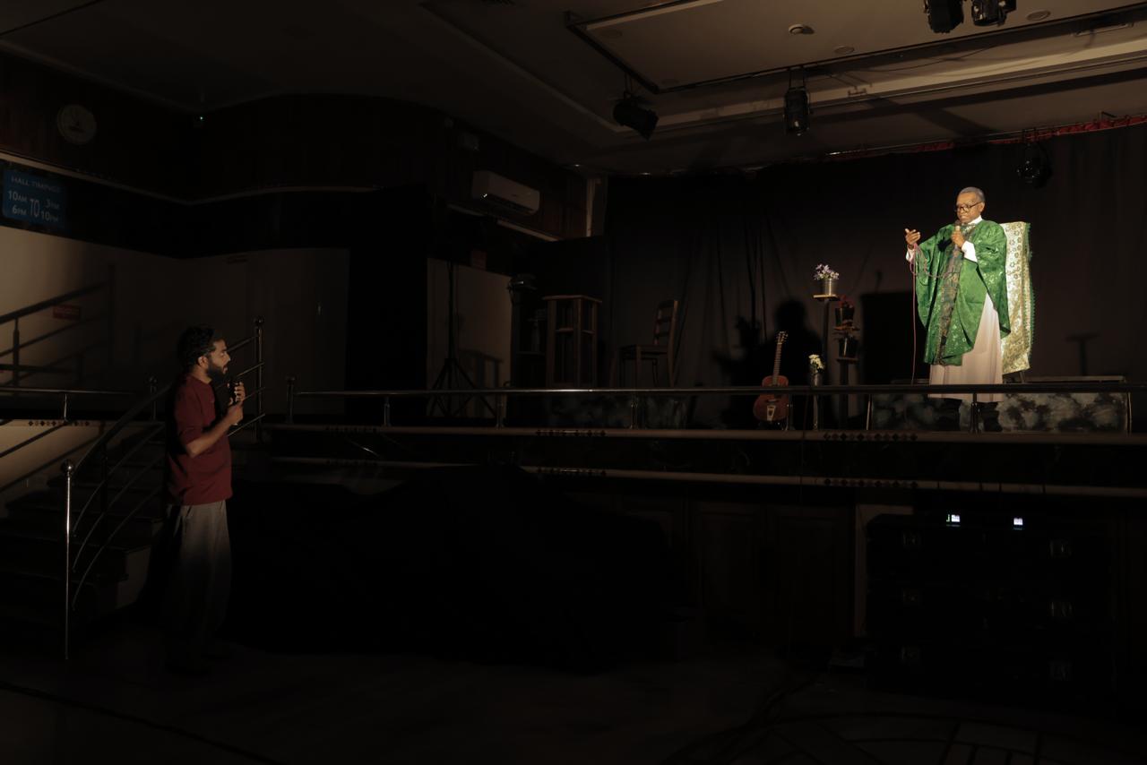 The setting was simple yet symbolic. A modest parish office ambience — a table, two chairs, and a prominently placed stand and platforms — created the right spiritual atmosphere. Soft lighting enhanced the reflective mood, while silence between dialogues often spoke louder than words.