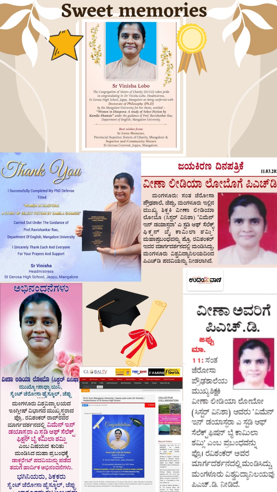 A passionate lover of literature and a firm believer in lifelong learning, Sr. Vinisha pursued higher studies and successfully earned her Doctorate in English from Mangalore University, adding a notable academic milestone to her consecrated life.