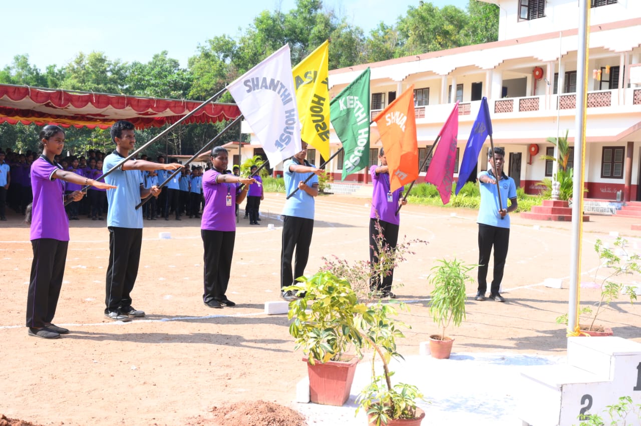 A majestic march-past by students representing various houses, as Chief guest Mr Nityananda Shetty,  received the salute. He was deservedly honoured with a memento and draping traditional shawl on this occasion.