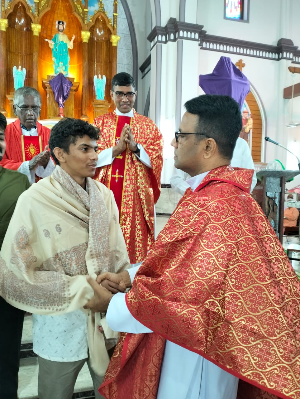 BARKUR, April 14, 2025 - The St. Peter's Church in Barkur witnessed a momentous occasion yesterday as the parish community came together to honor Jeston Dias, who recently secured the 9th rank at the state level in Karnataka's Pre-University Course (PUC) second-year science stream examinations. The felicitation ceremony was conducted following the Palm Sunday Mass, adding spiritual significance to the celebration of academic excellence.