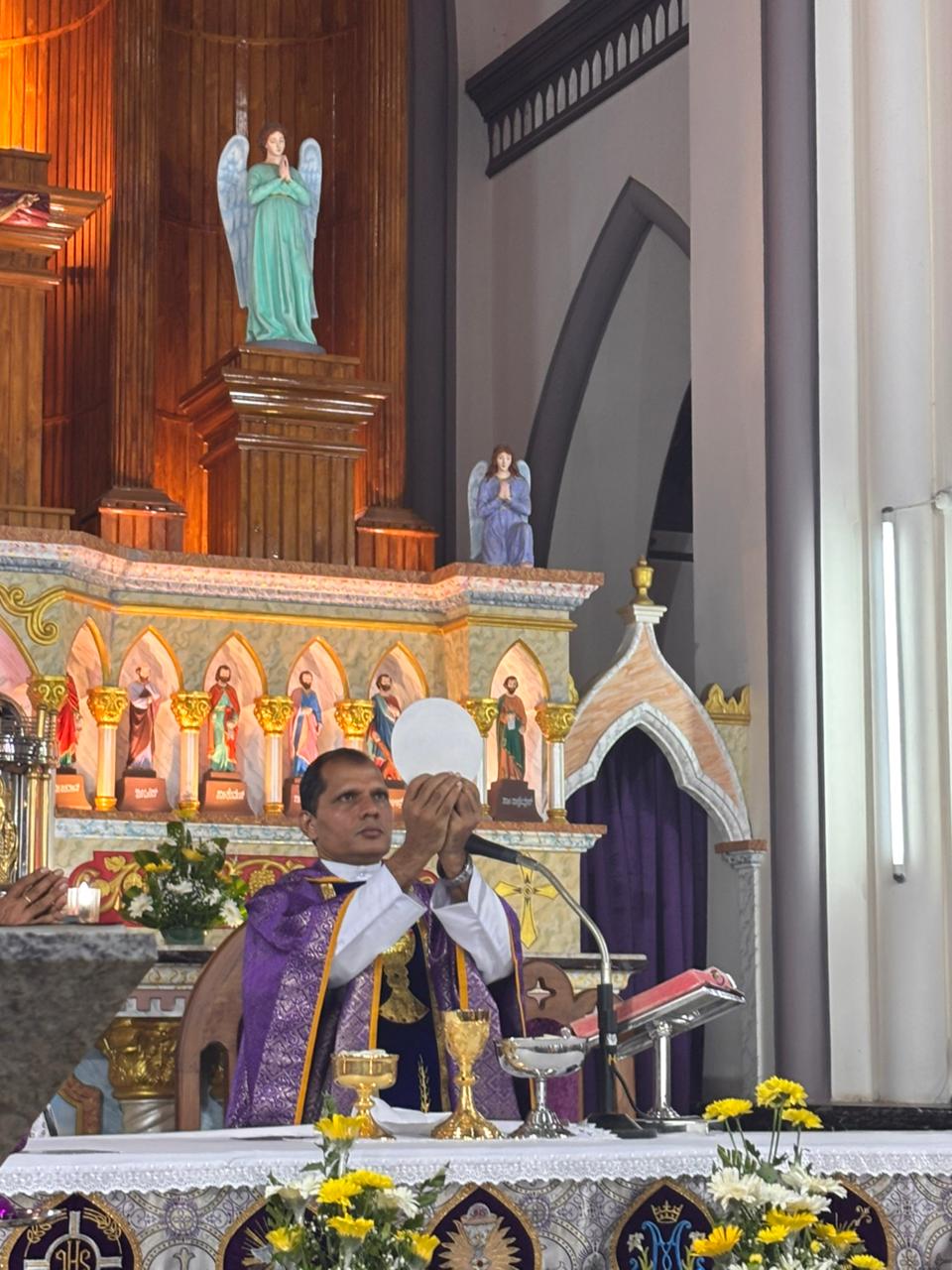 In his homily, Rev. Fr. Rajesh Rosario delivered an inspiring message on the themes of the Eucharist and brotherhood, emphasizing the importance of unity and fraternal love within the Christian community.