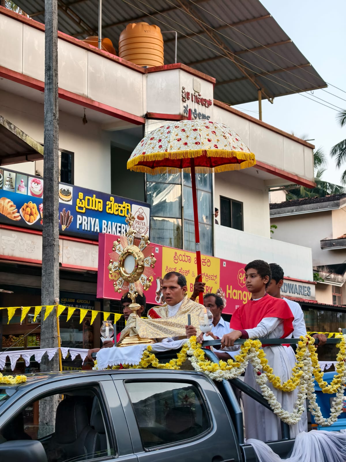 The solemn celebration included the Holy Eucharist, which was presided over by Rev. Fr. Rajesh Rosario, Rector of Jeppu Seminary, who served as the main celebrant. Rev. Fr. Ronald Miranda, the Parish Vicar, concelebrated the Mass.