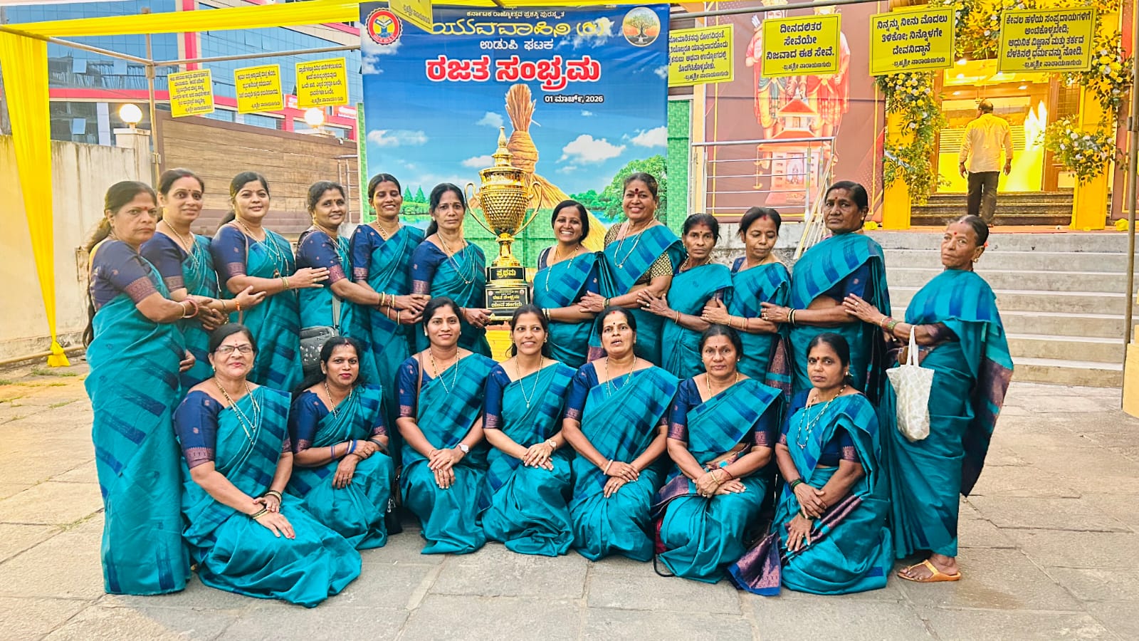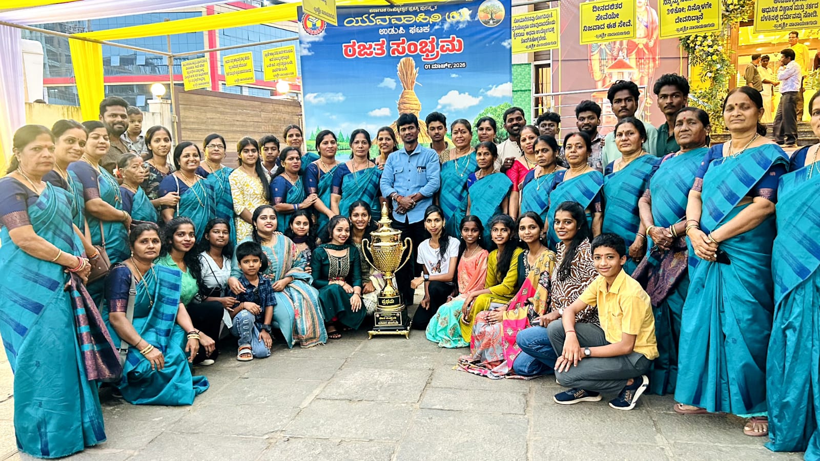 In the "Yuva Sangama" competition held on February 28, 2026, the Shri Narayana Guru Mahila Bhajana Mandali (Women's Devotional Singing Group) from Billava Seva Sangha (Registered), Shivagiri Kshetra, Barkur, delivered a captivating performance that earned them first place. The winning team was awarded a cash prize of Rs. 20,000 along with a trophy, recognizing their outstanding devotional singing prowess.