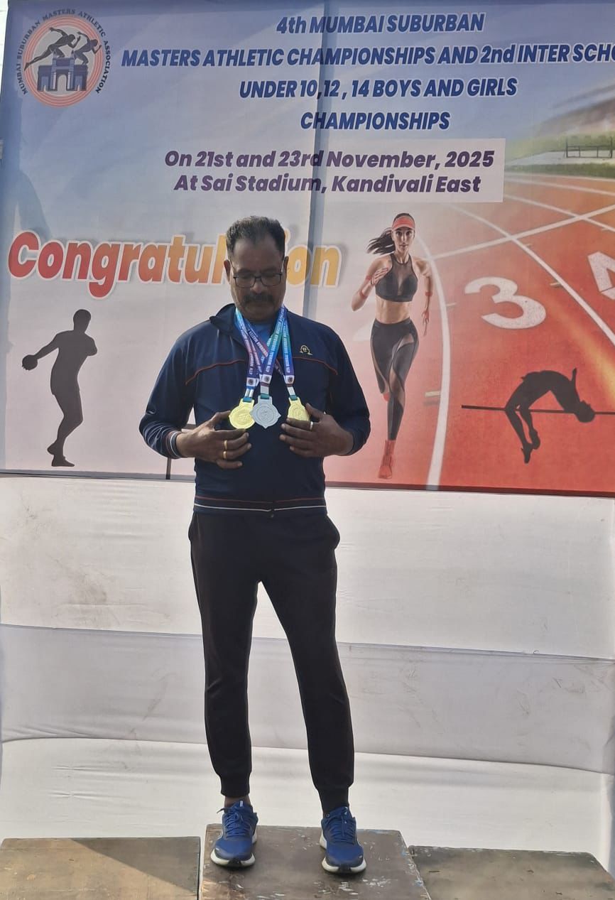 Mumbai, November 2025 — Joylan Fernandes of Barkur has cemented his status as one of Mumbai's most formidable master athletes, claiming three medals at the 2025 Athletic Meet organized by the Mumbai Suburban Masters Athletic Association in Kandivli.