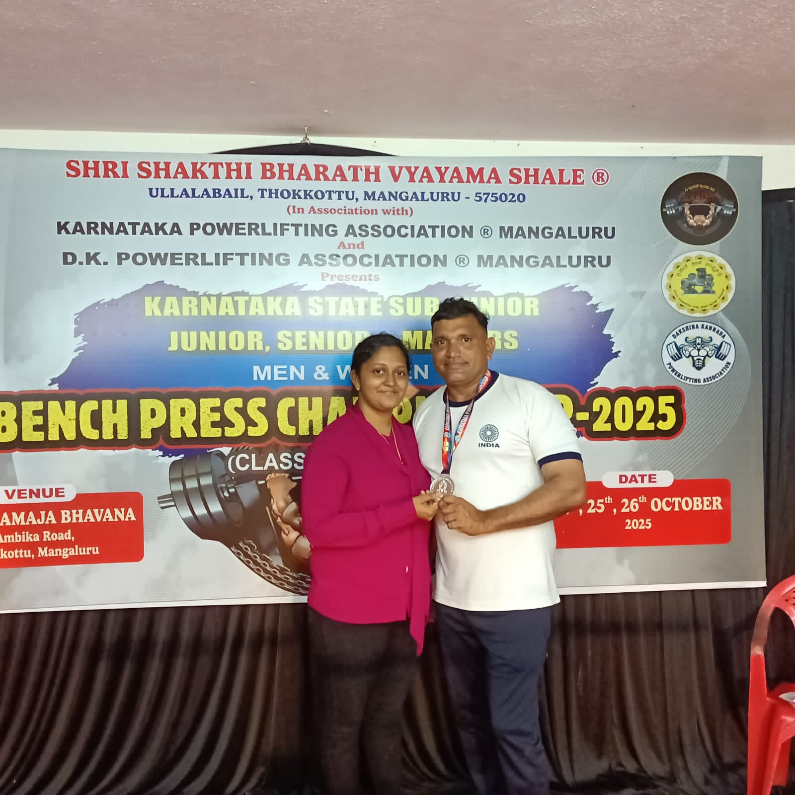 Mangalore – In a display of raw strength and technical precision, Roshan Lobo from Barkur continued his remarkable winning streak by securing a silver medal at the Karnataka State-Level Classic Bench Press Competition held in Mangalore on October 24, 2025. The event, organized by Shri Shakthi Bharath Vyayama Shale, Ullalbail, Thokottu, saw competitors from across the state vie for top honors in one of powerlifting's most demanding disciplines.