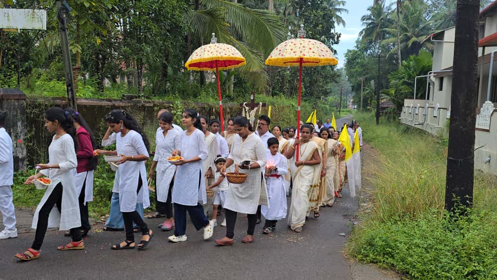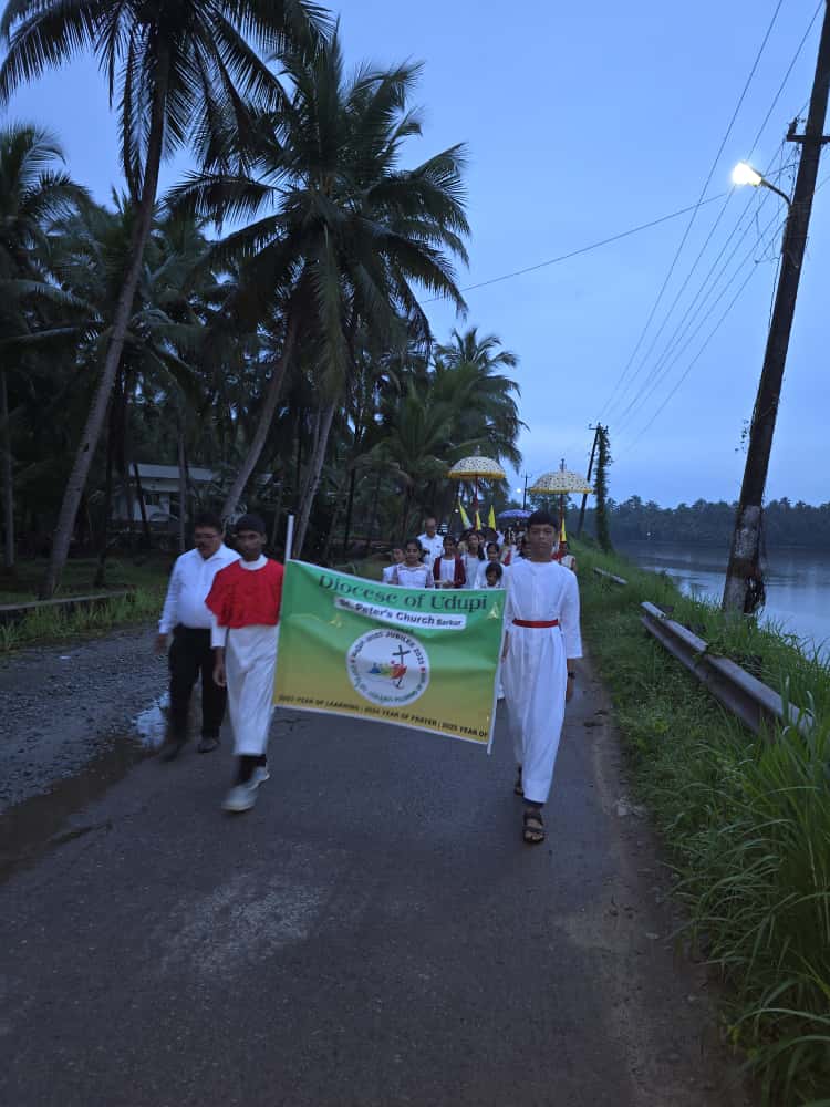 On October 19, 2025 the cross was brought back to Barkur church in a grand procession. All the ward members joined the procession along with ward representatives, ward secretary and ex-ward leaders. The procession was complete with flags, flowers and devotional songs all along the way. White clad children, showering flowers along the way added color to the process.