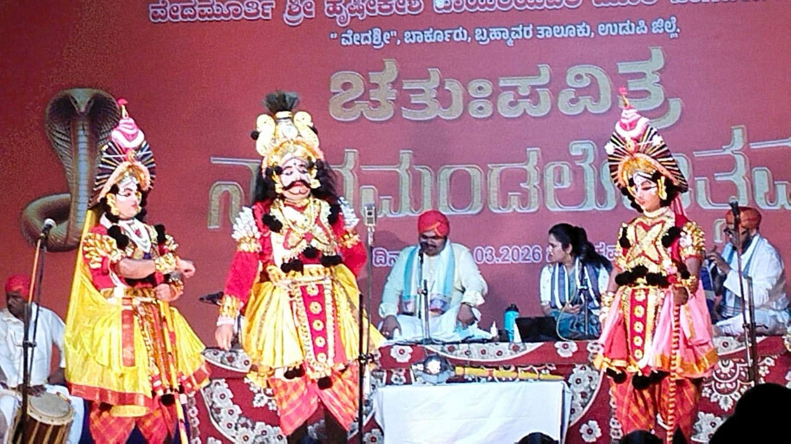 On Saturday, 7th March 2026, near the Barkur Sante Market, a celebrated Yakshagana performance of the story "Sudarshana Vijaya" was staged, coordinated by Sri Pradeep V. Samaga, featuring renowned artists from both the Tenku (southern) and Badagu (northern) traditions of this classical art form.