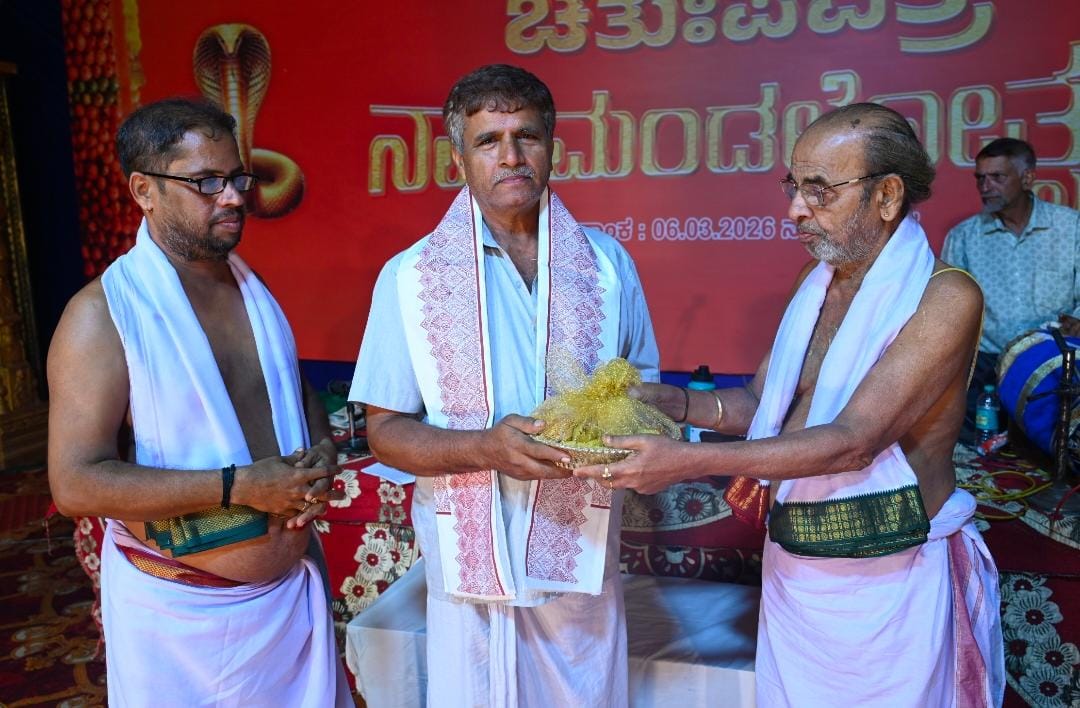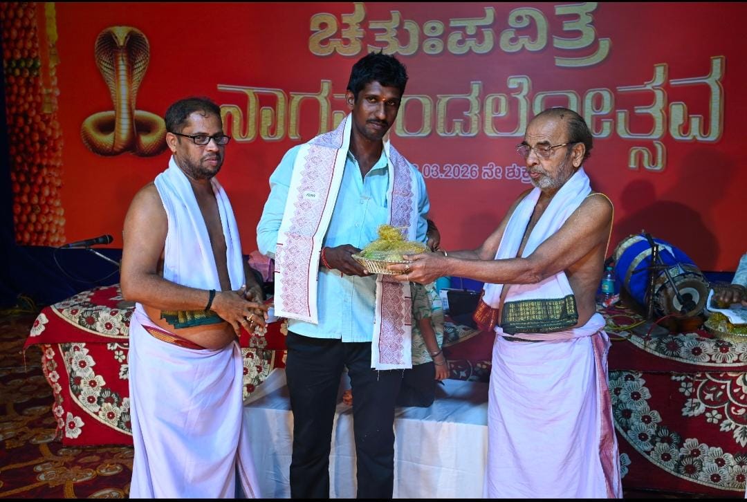Barkur, March 7, 2026: The Chaturtha Pavitra Nagamandalotsava (Four-fold Sacred Serpent Worship Festival), held on Friday, 6th March 2026 at the sacred shrine of the ancestral Naga deity of Vedamurthi Sri Hrishikesha Bayari, Vedashri, Barkur, was celebrated with great devotion and remarkable success.
