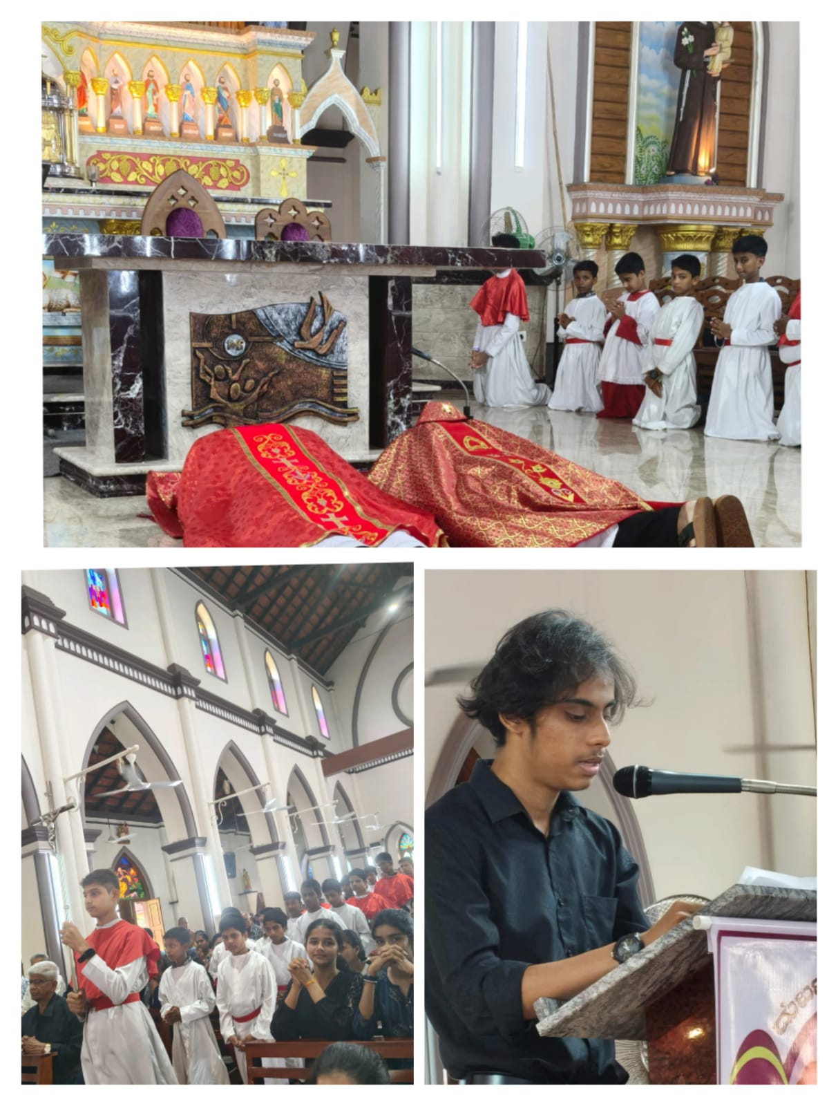 The liturgical celebration was structured around four key elements — the Liturgy of the Word, solemn intercessory prayers, veneration of the cross, and the distribution of Holy Communion. Fr. Lasrado delivered the homily, offering reflections on the meaning of prayer and faith in the light of Christ's sacrifice.