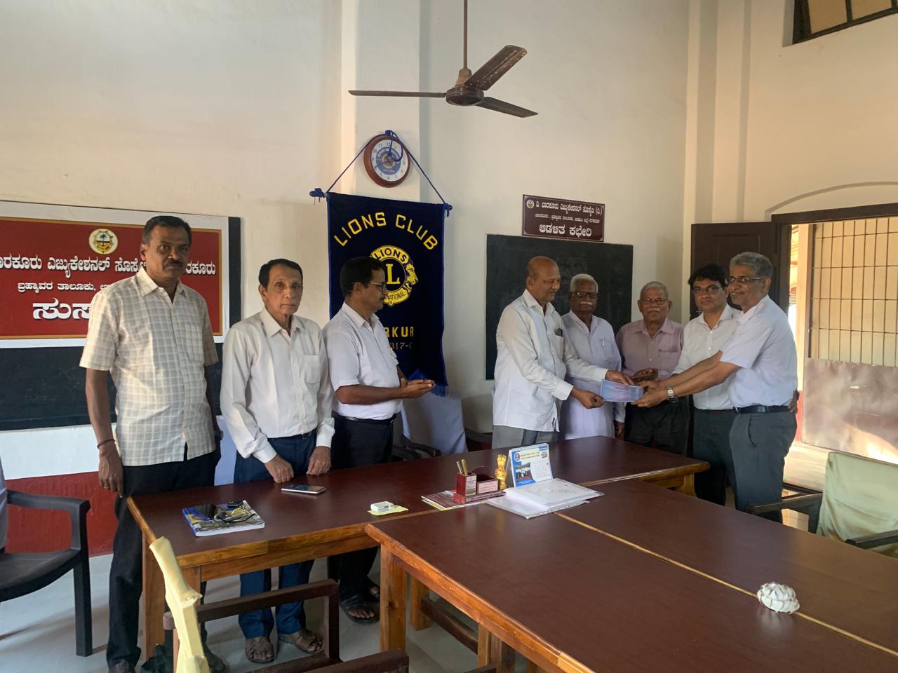 Ln. Praveen Kumar Shetty, President of the Lions Club of Barkur, and Jaikishan Shetty, representing the Champady family, presented the cheque to the Education Society. Several members of the Lions Club of Barkur were also in attendance at the event.