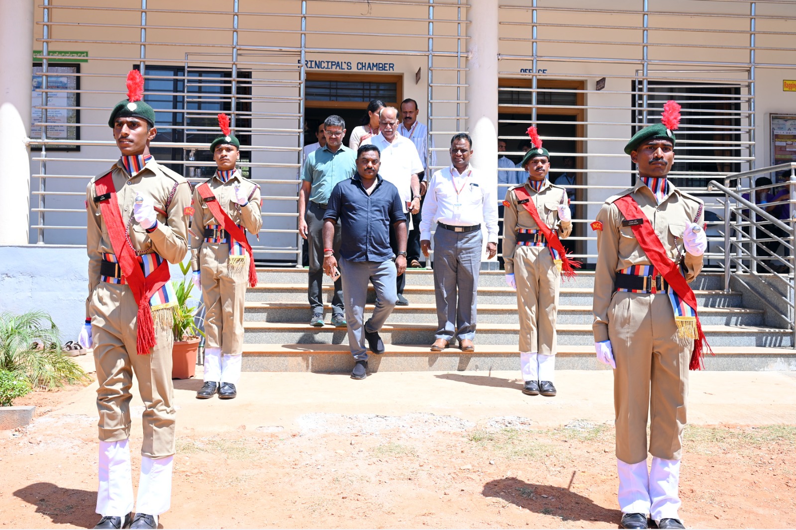 Distinguished guests at the event included Dr. Gerald Santosh D'Souza, Director of Physical Education, Mangalore University; Sri Rajarama Shetty, Member of the College Development Committee; Smt. Savitha, Director of Physical Education at Kapu National Government First Grade College and Observer from Mangalore University; Smt. Sumathi, Director of Physical Education; and Sri Ameer Basha, Member of the College Development Committee.