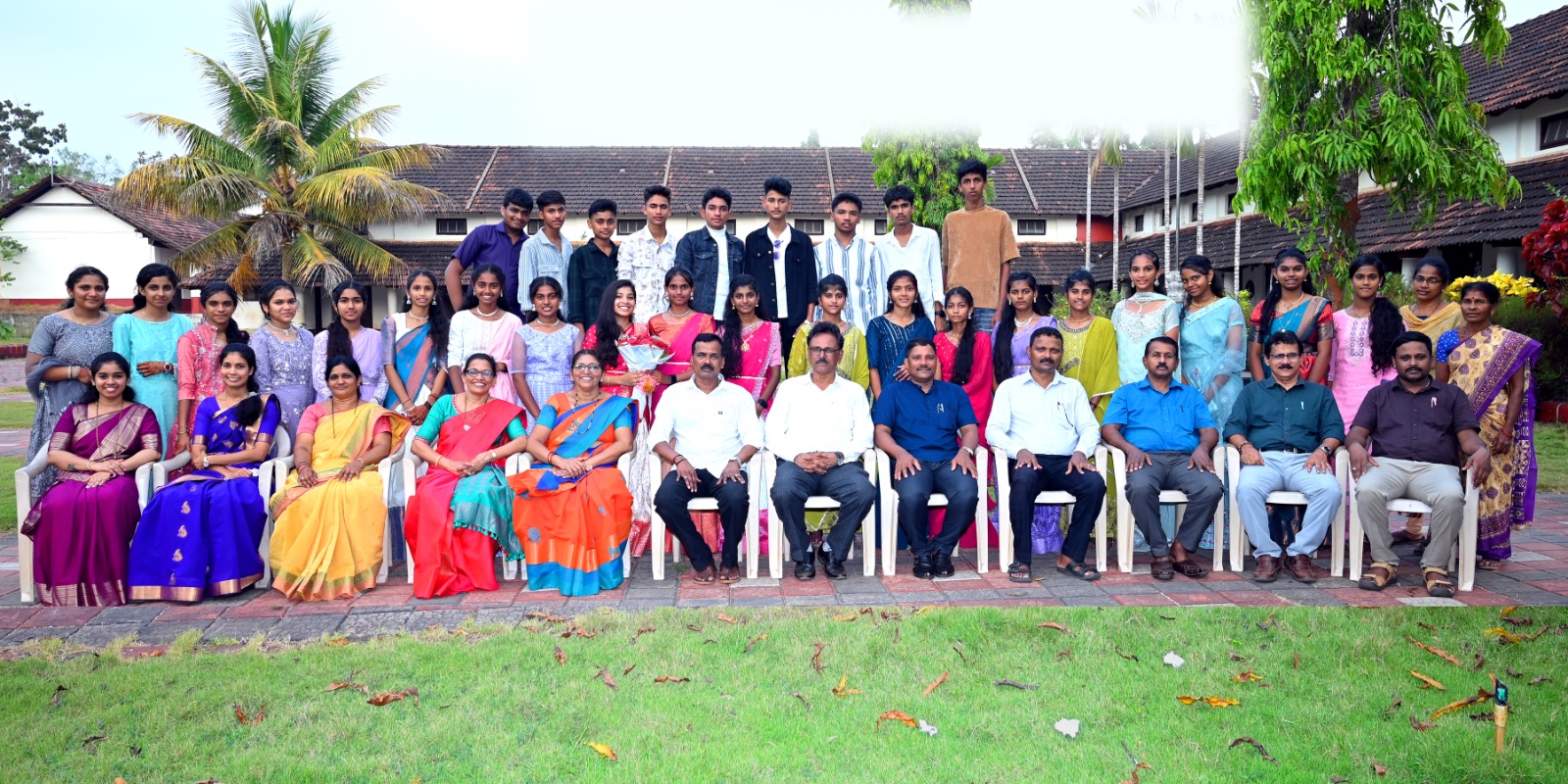After the programme, the students enjoyed a light refreshment prepared by the Akshara Dasoha staff. Later, the Class X students gathered in front of the flag post to take photographs with their teachers. The Administrative Co-ordinator and the Correspondent joined them as well.