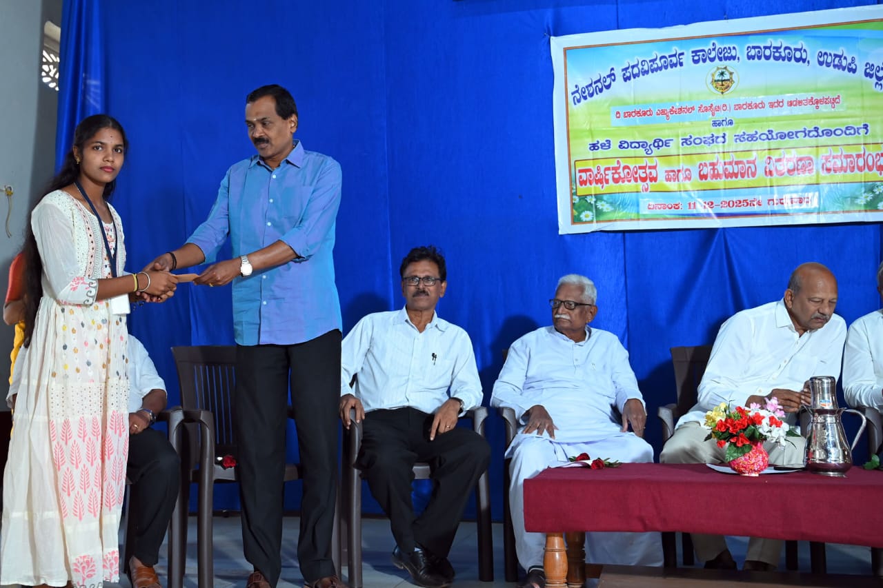 The function was presided over by Mr. B. Shantarama Shetty, proud recipient of the prestigious 'Sahakara Ratna State Award' deservedly recognised on this occasion as Principal and staff draped him with traditional shawl, garland, fruit basket and a memento and in his capacity as the dynamic President of the Barkur Educational Society, in his presidential address, congratulated all the winners and achievers for bringing honour and recognition to the college through their talents and hard work.