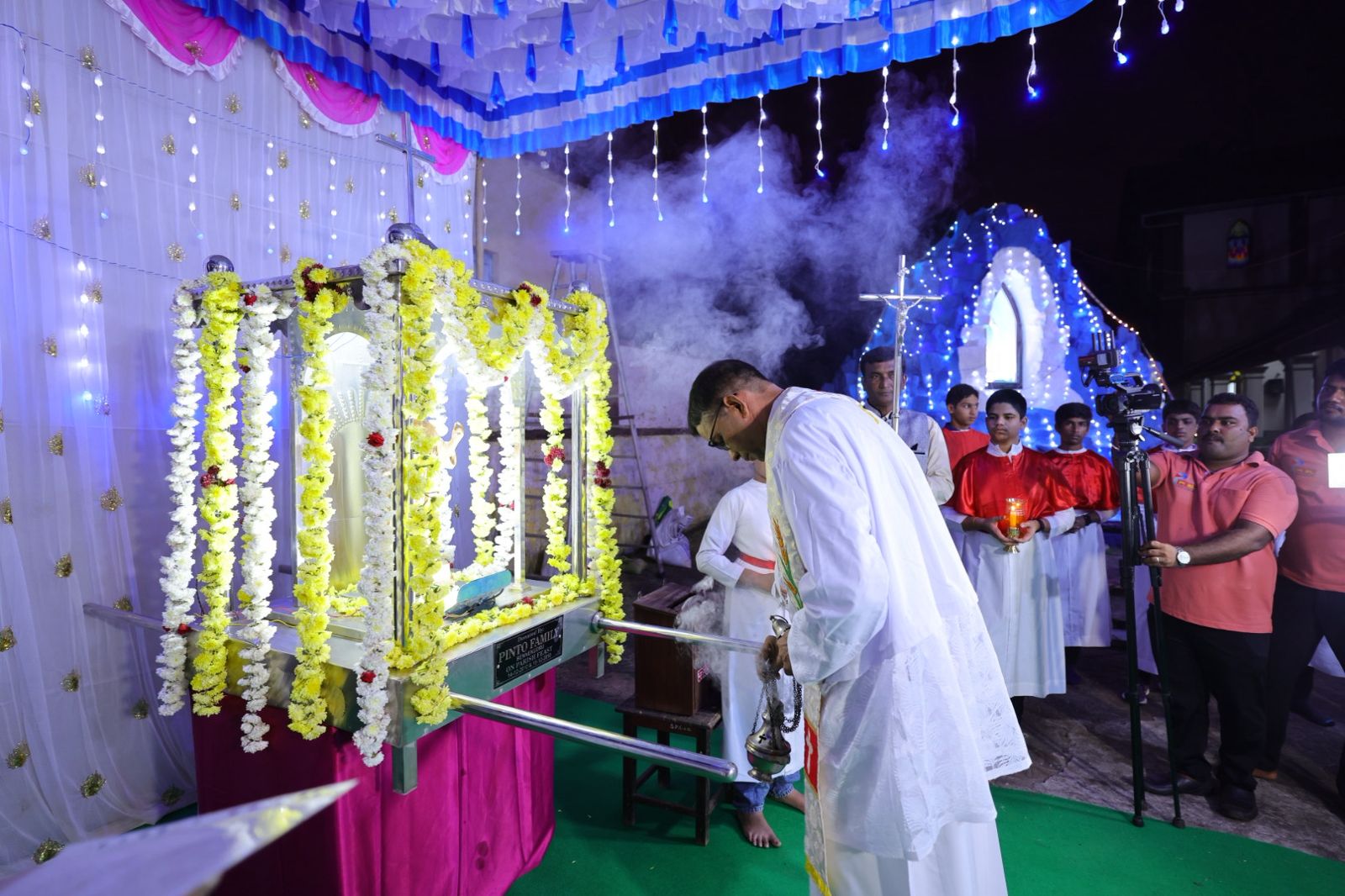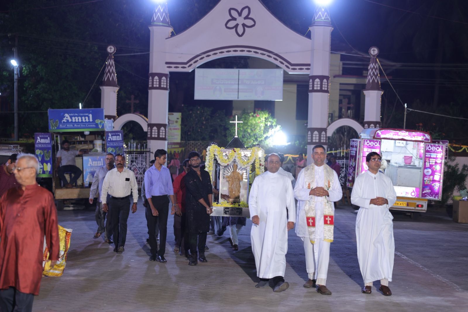 The grand procession that preceded the evening ceremonies, led byparish vicar Rev. Fr. Ronald Miranda, along with Rev. Fr. Ferdinand Gonsalves and numerous priests from the Kallianpur Deanery, transformed the familiar streets of Barkur into a corridor of collective memory and shared faith.