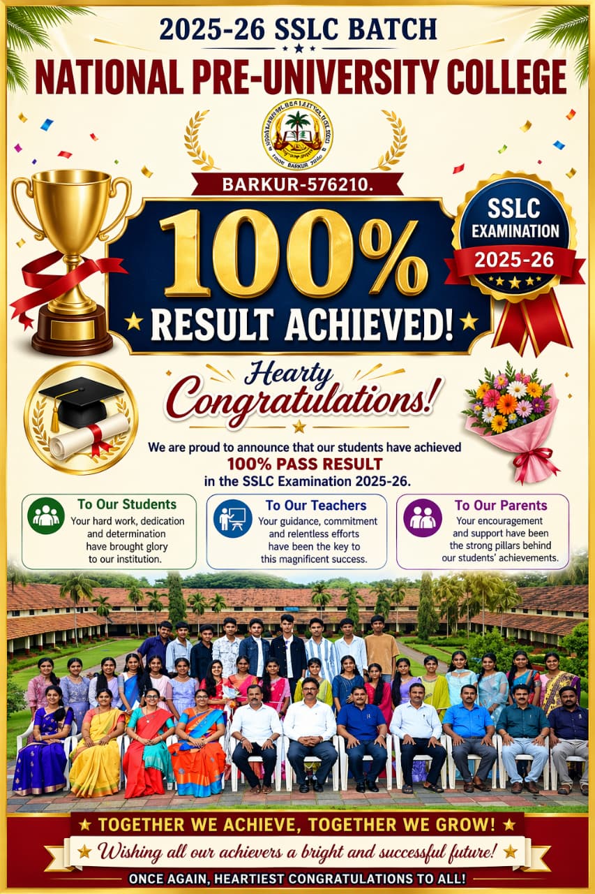 A wave of pride and jubilation has swept across the coastal town of Barkur as two of its most cherished institutions — National High School, Barkur and SVVN English Medium High School, Heradi–Barkur — scripted history once again. Both schools, under the esteemed banner of The Barkur Educational Society, have achieved a phenomenal 100% pass result in the Karnataka SSLC Board Examination 2026. Not a single student was left behind.