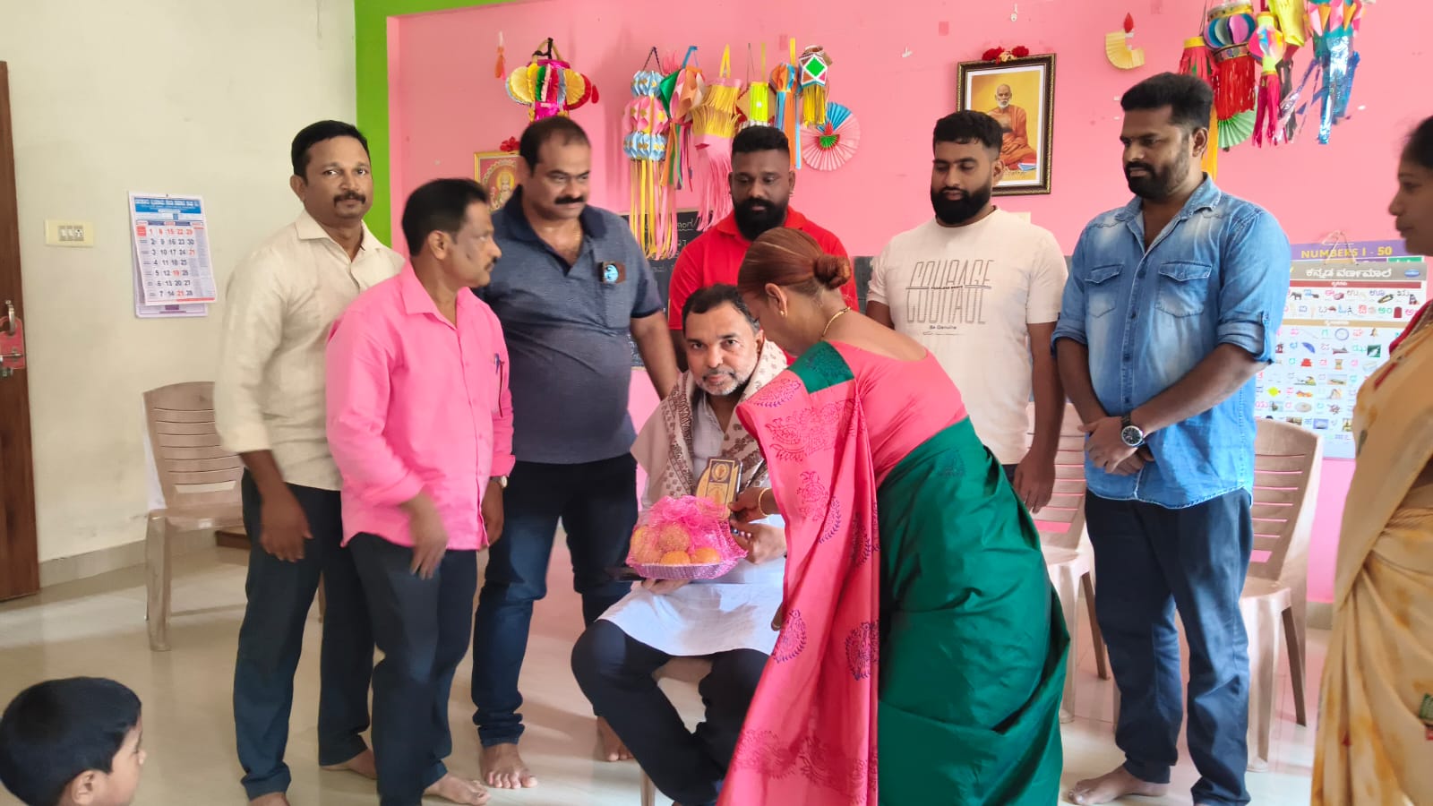 Sri Suggi Sudhakar Shetty, President of the Renovation Committee of Sri Panchalingeshwara Temple, Barkur, had been scheduled to attend the event. However, due to unavoidable circumstances, he along with Sri Srinivasa Shetty, Secretary of the Panchalingeshwara Temple Renovation Committee, visited the Shishu Mandira on Friday, March 27, 2026, spent time with the little ones, and extended their best wishes for the annual celebrations. Both dignitaries were felicitated and honoured by the Shishu Mandira.