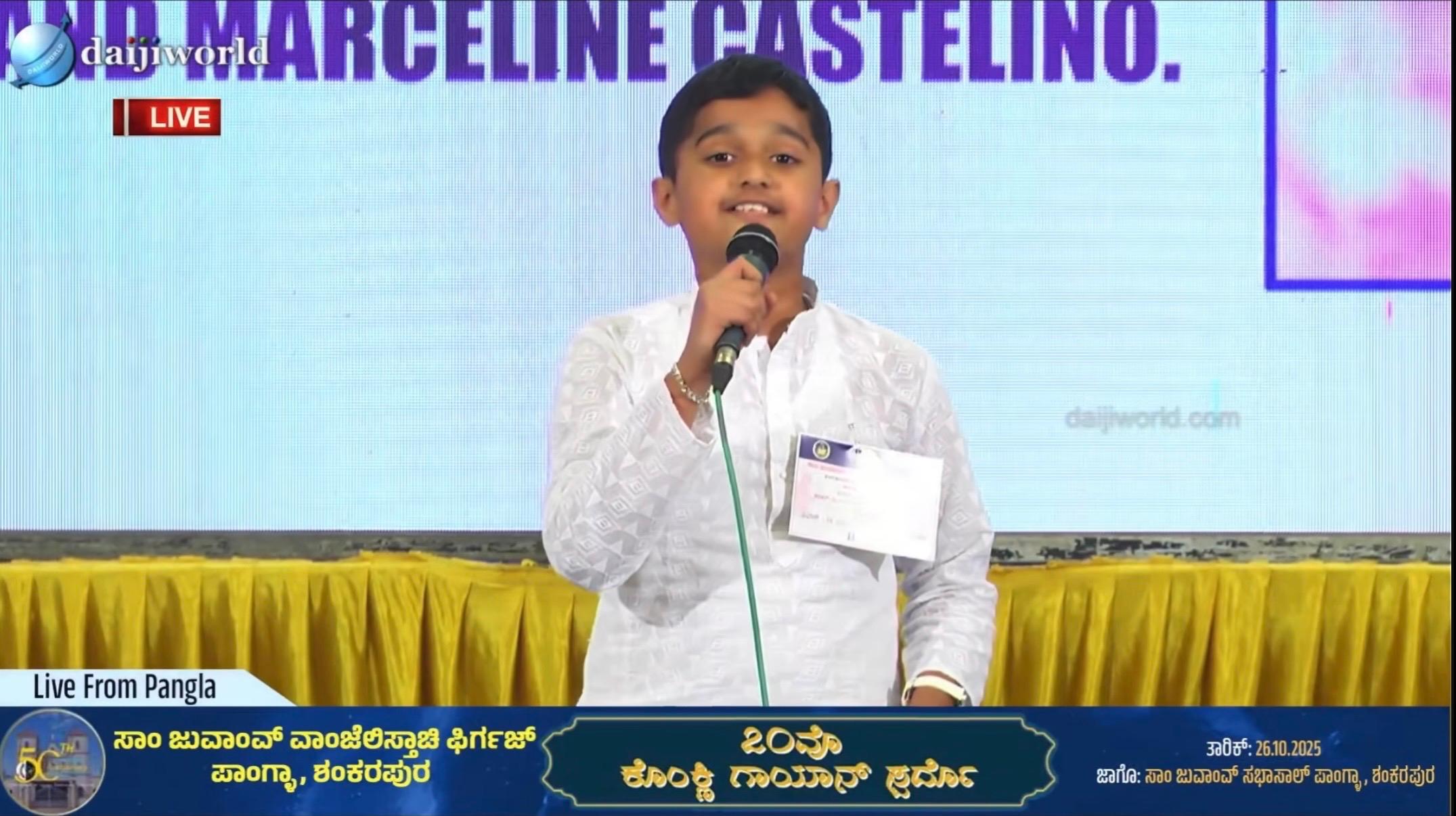 The young artist has already graced several prestigious stages, including a recent performance at the Mini Wilfy Nite in Mangalore last November. He also secured second place in the 18th Diocese Level Singing Competition organized by ICYM Shankarpura in the children's category.