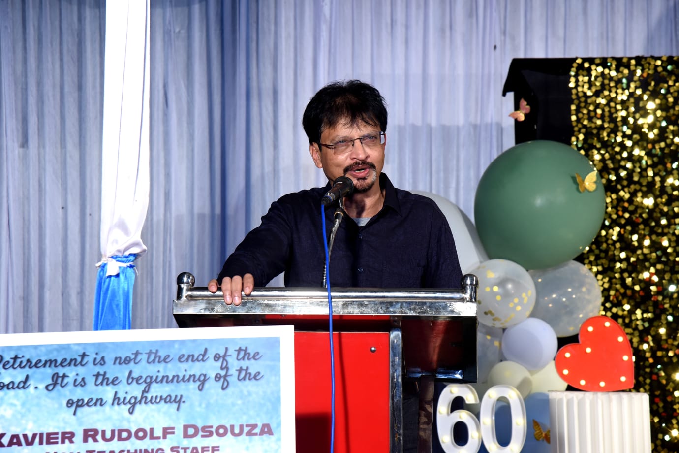 In a heartfelt tribute, Fr. Reginald raised a toast not only to Dolphy’s retirement but also to two personal milestones—his Silver Jubilee of Marriage with Judith D’Souza and his 60th Birthday. He praised the strong bond between Dolphy and Judith, built on mutual respect, faith, and love, and acknowledged their sacrifices and dedication to family.