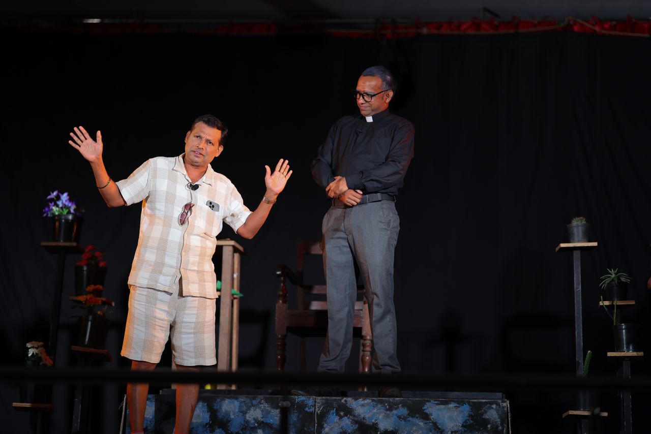 The young Assistant Parish Priest, on the other hand, brought vibrancy, curiosity, and emotional questioning to the stage. His expressions conveyed the struggle of a modern priest trying to understand the mystery of betrayal and human frailty at ease by Clanwin Fernandes....