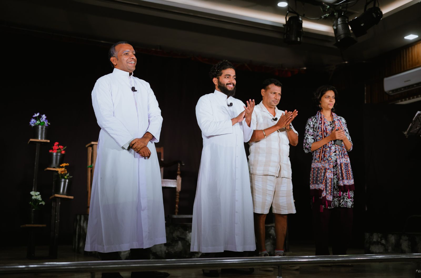 The setting was simple yet symbolic. A modest parish office ambience — a table, two chairs, and a prominently placed stand and platforms — created the right spiritual atmosphere. Soft lighting enhanced the reflective mood, while silence between dialogues often spoke louder than words.