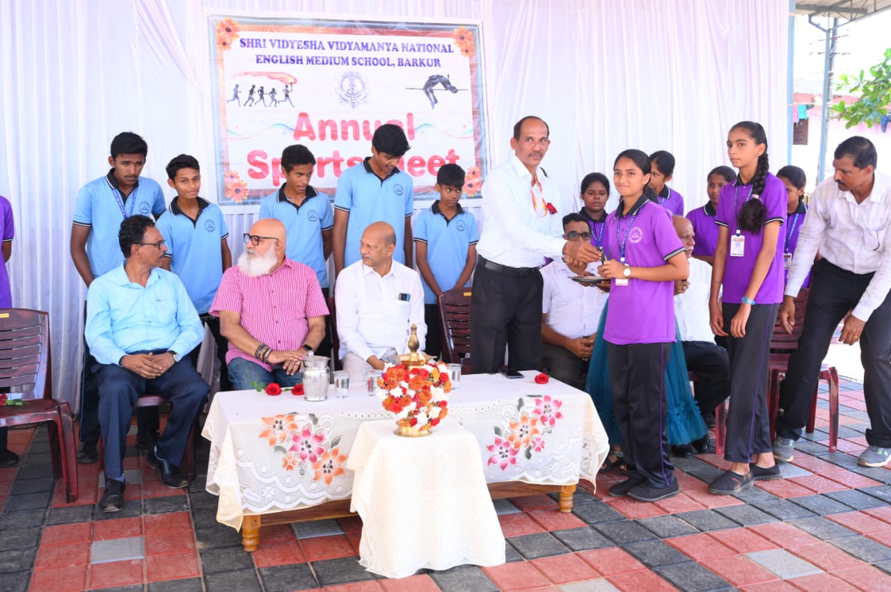 The Annual Sports Meet 2025–26 of Shri Vidyesha Vidyamanya National English Medium School, Barkur was inaugurated with great enthusiasm and a vibrant display of sportsmanship on Tuesday, 25th November 2025. The programme began punctually at 9:00 AM, graced by distinguished dignitaries from The Barkur Educational Society (R) and the school administration.