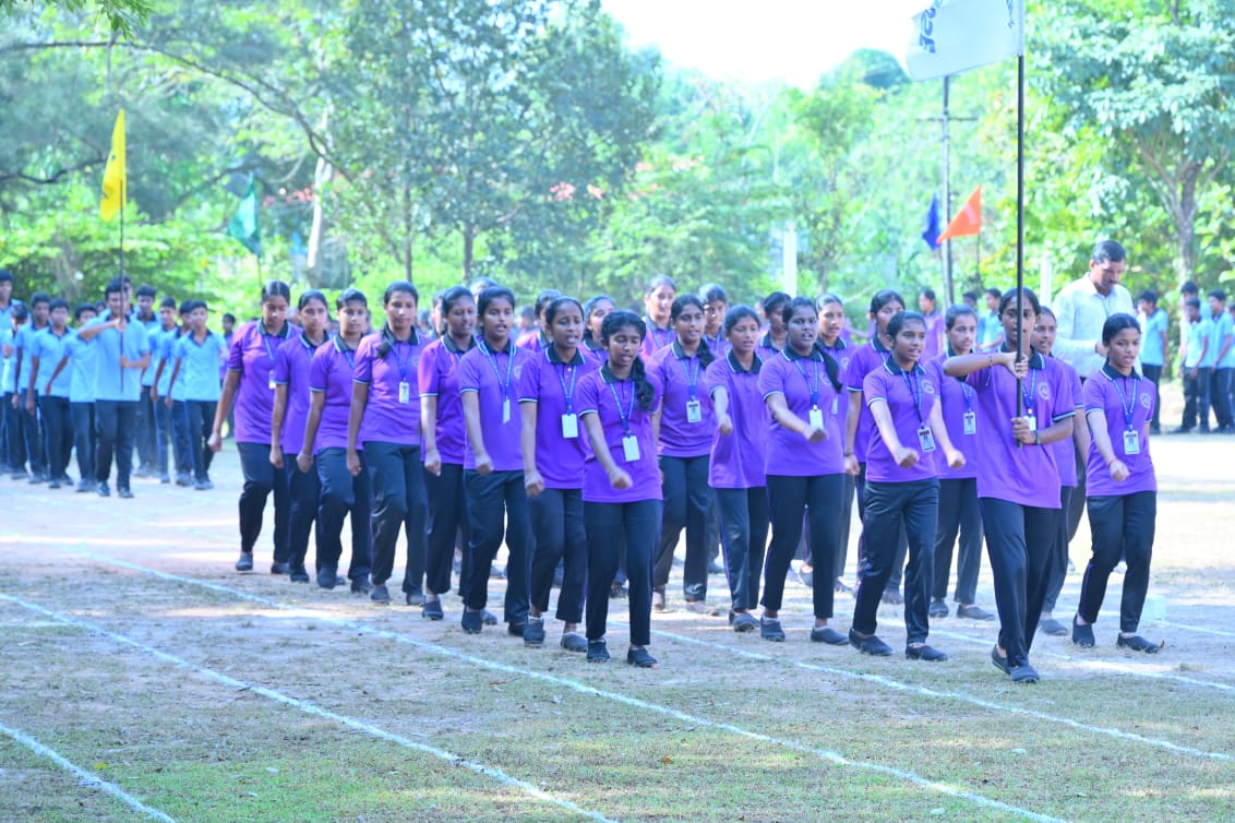 A majestic march-past by students representing various houses, as Chief guest Mr Nityananda Shetty,  received the salute. He was deservedly honoured with a memento and draping traditional shawl on this occasion.