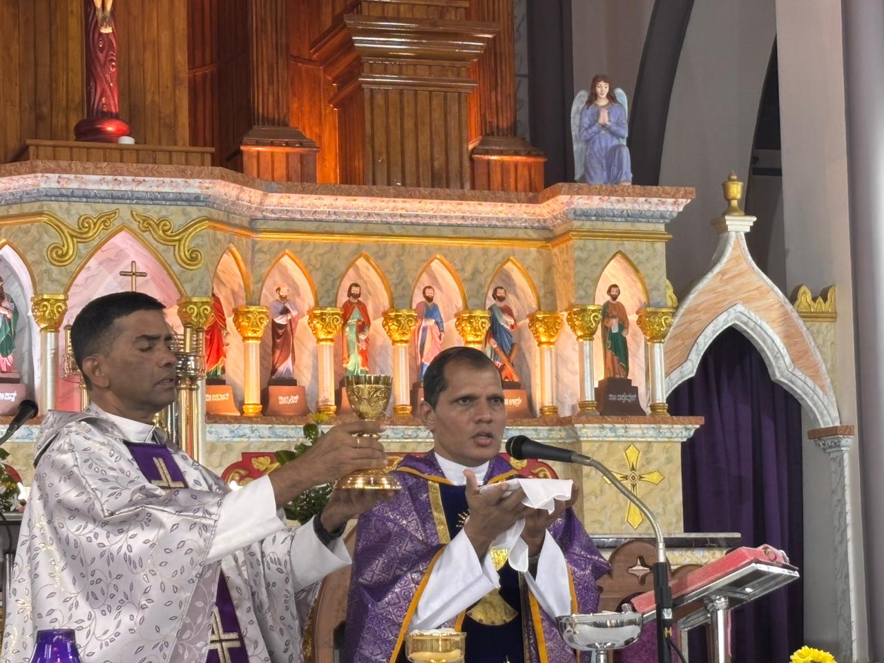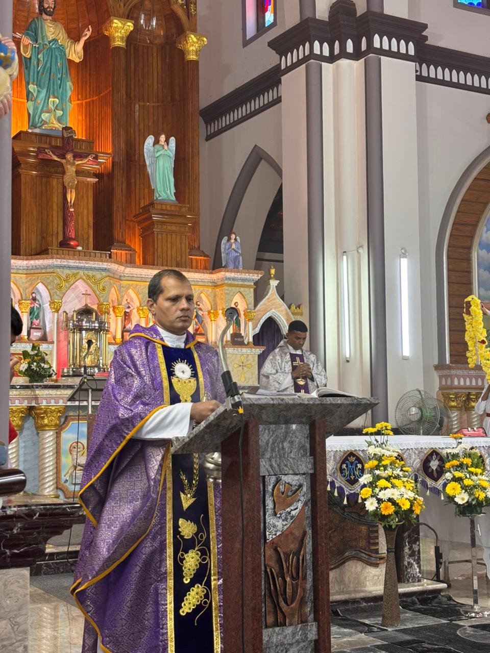 In his homily, Rev. Fr. Rajesh Rosario delivered an inspiring message on the themes of the Eucharist and brotherhood, emphasizing the importance of unity and fraternal love within the Christian community.