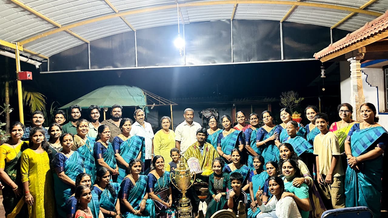 In the "Yuva Sangama" competition held on February 28, 2026, the Shri Narayana Guru Mahila Bhajana Mandali (Women's Devotional Singing Group) from Billava Seva Sangha (Registered), Shivagiri Kshetra, Barkur, delivered a captivating performance that earned them first place. The winning team was awarded a cash prize of Rs. 20,000 along with a trophy, recognizing their outstanding devotional singing prowess.