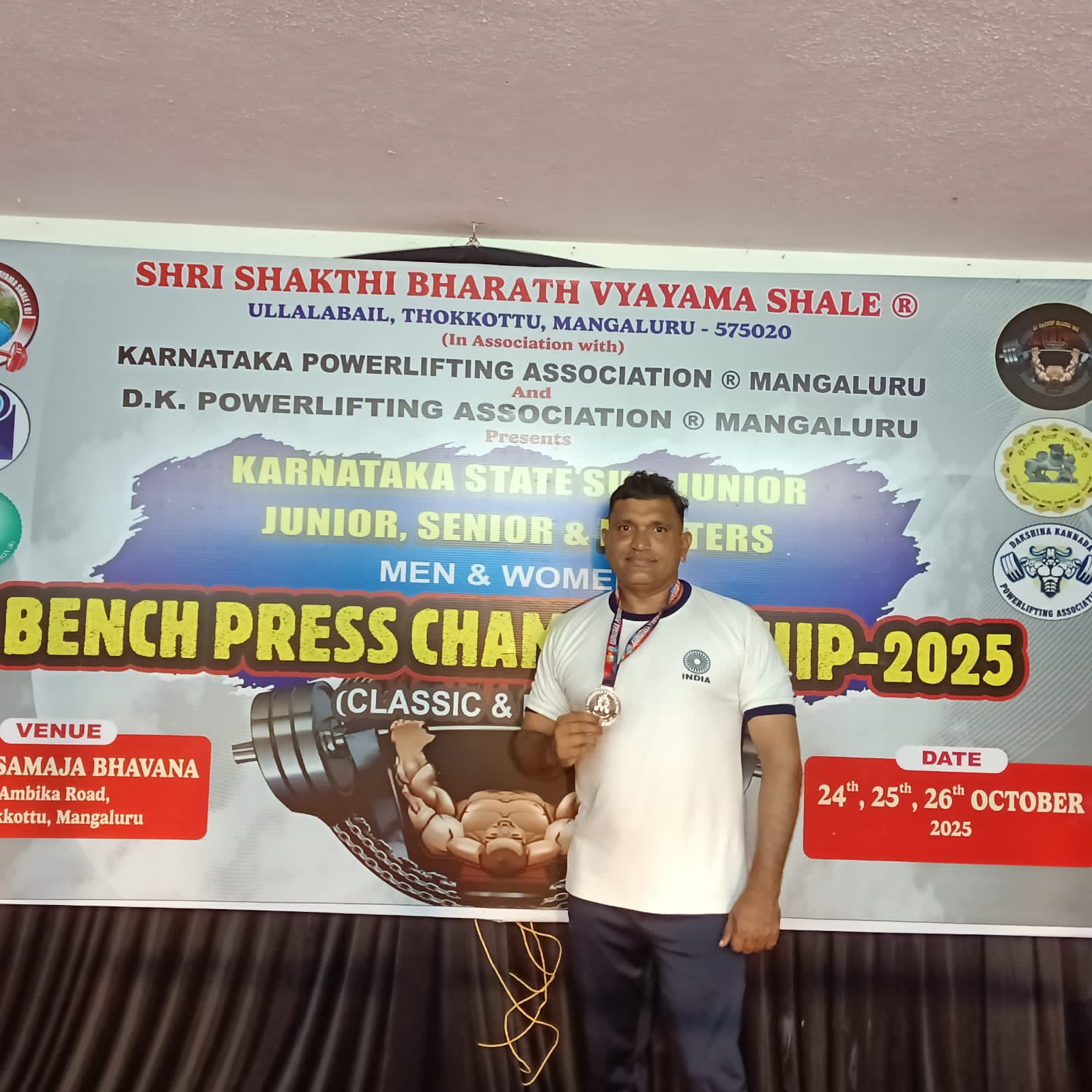 Mangalore – In a display of raw strength and technical precision, Roshan Lobo from Barkur continued his remarkable winning streak by securing a silver medal at the Karnataka State-Level Classic Bench Press Competition held in Mangalore on October 24, 2025. The event, organized by Shri Shakthi Bharath Vyayama Shale, Ullalbail, Thokottu, saw competitors from across the state vie for top honors in one of powerlifting's most demanding disciplines.