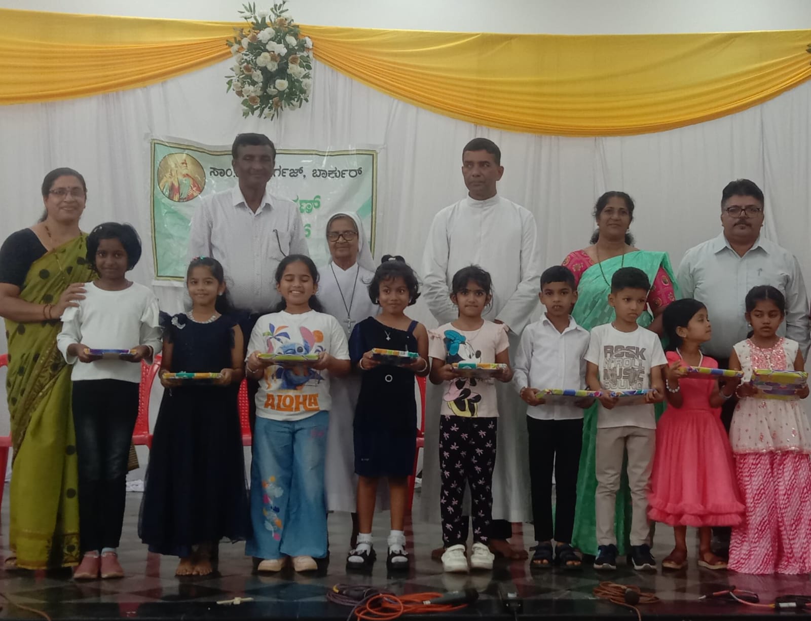Prizes were distributed to children who secured first, second, and third places in each Catechism class, as well as to those who achieved cent percent attendance throughout the year. A special honour was accorded to parishioner Loyal Passanha, who achieved a commendable 87% in the Udupi Diocese's Catechism public examination.