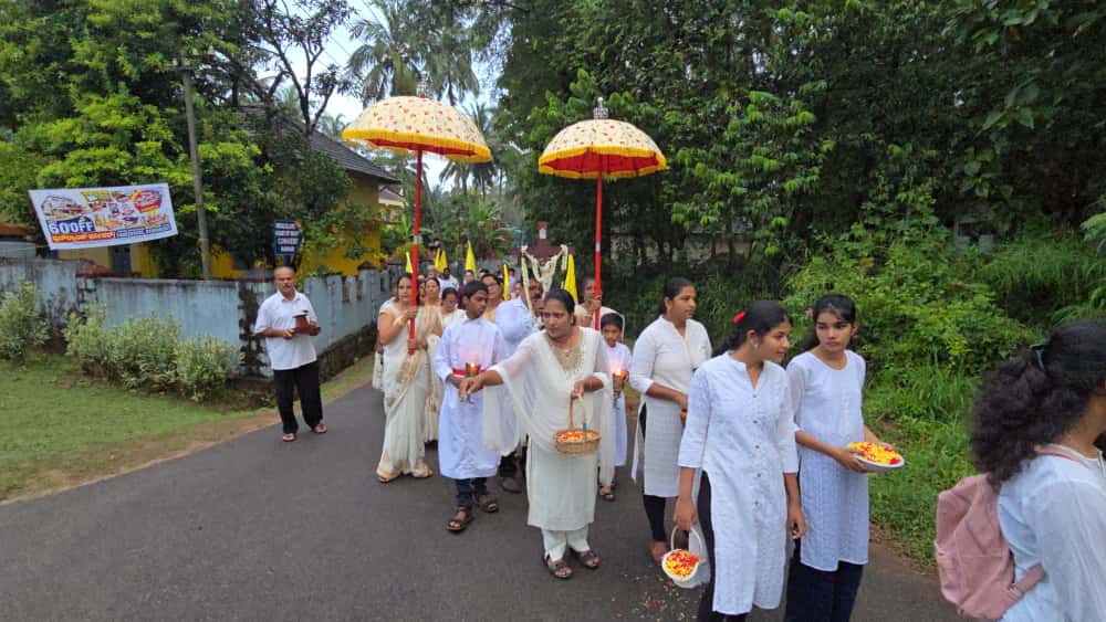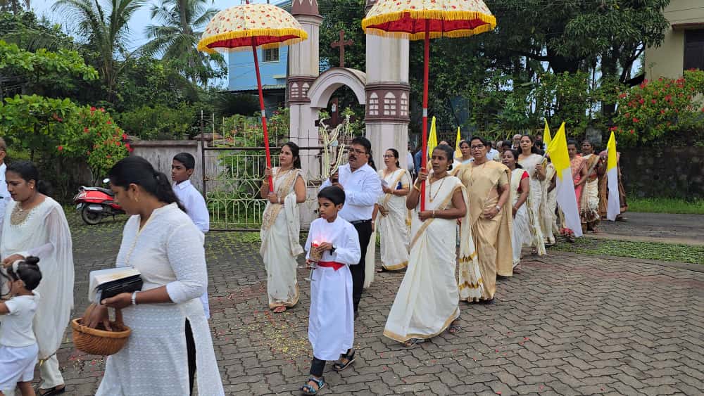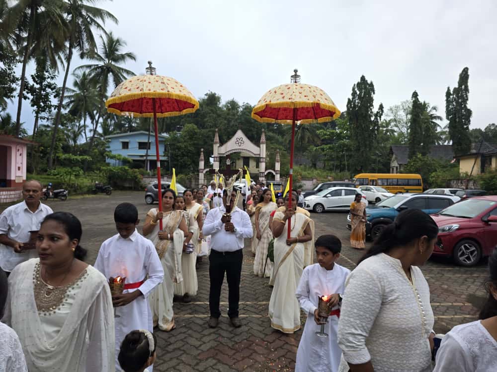 On October 19, 2025 the cross was brought back to Barkur church in a grand procession. All the ward members joined the procession along with ward representatives, ward secretary and ex-ward leaders. The procession was complete with flags, flowers and devotional songs all along the way. White clad children, showering flowers along the way added color to the process.