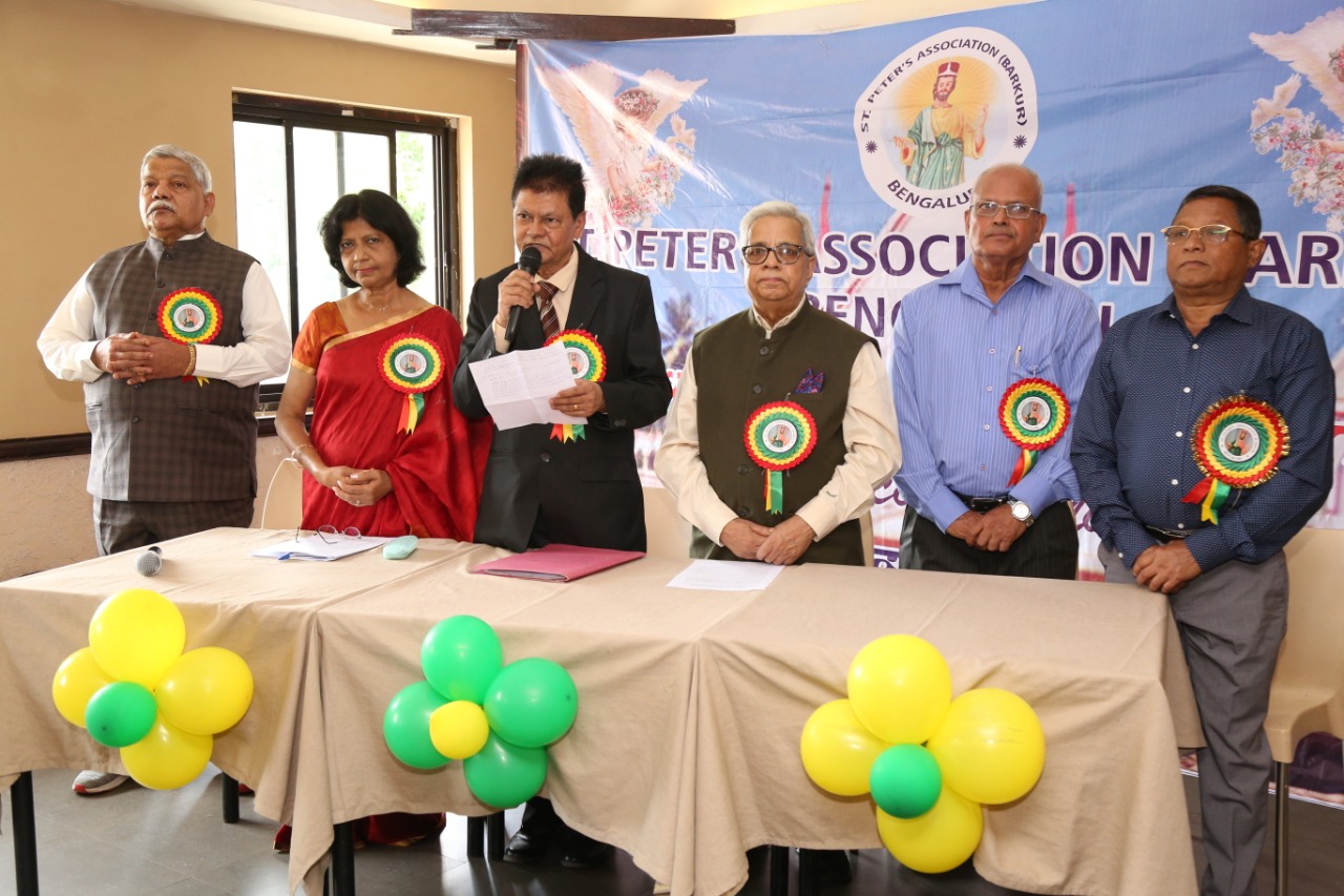 The Program began at 10.00 a.m. with the Holy Mass in the “Jesuit Niwas” Chapel in Bengaluru. Mr. James Sequeira, V. President, welcomed the gathering.