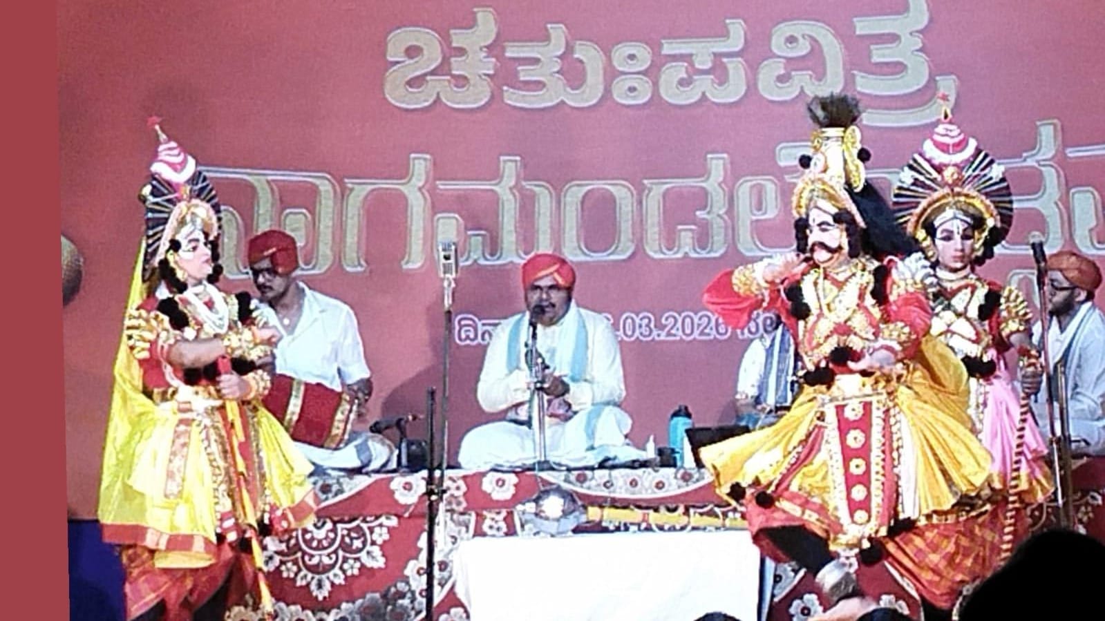 On Saturday, 7th March 2026, near the Barkur Sante Market, a celebrated Yakshagana performance of the story "Sudarshana Vijaya" was staged, coordinated by Sri Pradeep V. Samaga, featuring renowned artists from both the Tenku (southern) and Badagu (northern) traditions of this classical art form.