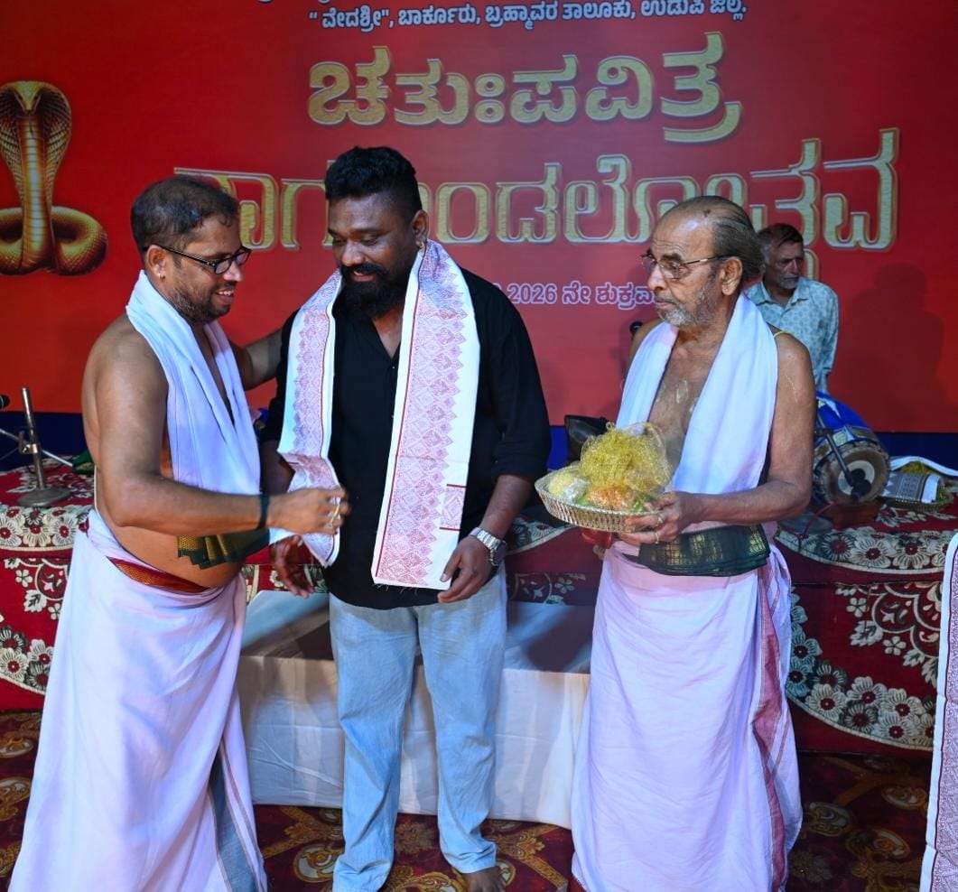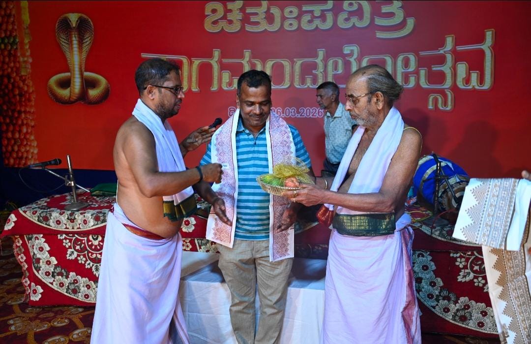 Barkur, March 7, 2026: The Chaturtha Pavitra Nagamandalotsava (Four-fold Sacred Serpent Worship Festival), held on Friday, 6th March 2026 at the sacred shrine of the ancestral Naga deity of Vedamurthi Sri Hrishikesha Bayari, Vedashri, Barkur, was celebrated with great devotion and remarkable success.