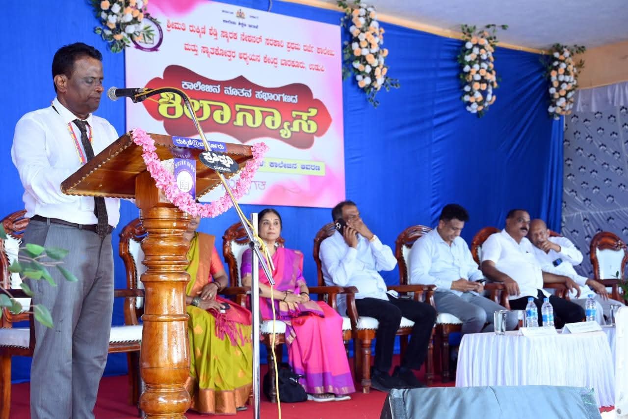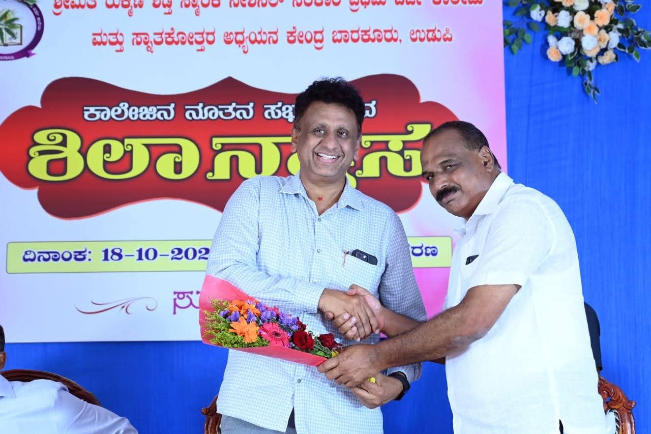 The foundation stone ceremony for the new auditorium at Srimati Rukmini Shedti Memorial National Government First Grade College and Postgraduate Research Centre in Barkur was held today.