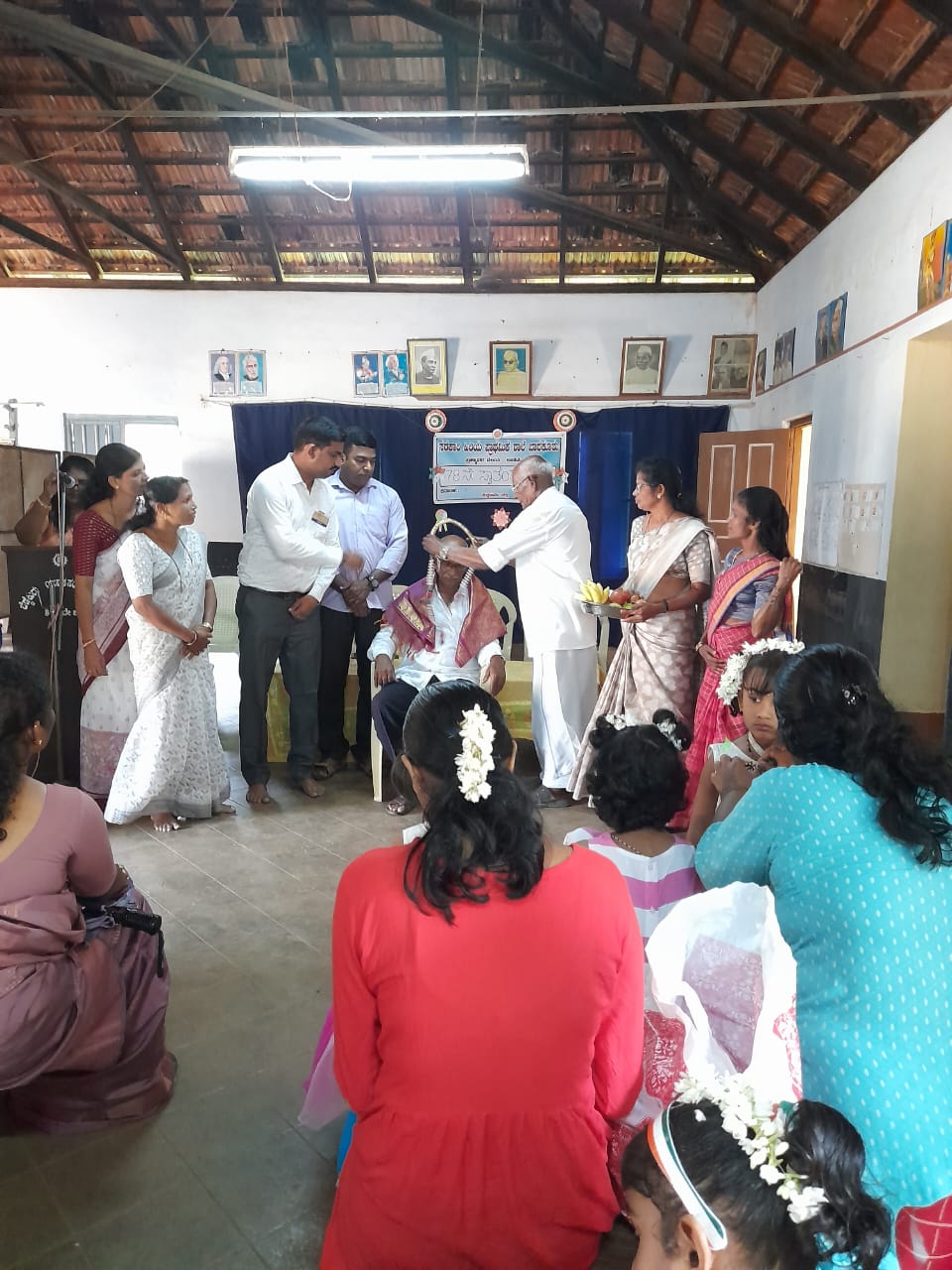 Headmistress Sharada Kumari welcomed everybody with flowers. Teaching Staff Shailaja introduced the dignitary who was felicitated. Madam Shobha conducted the program. Madam Gulabi delivered the vote of thanks.