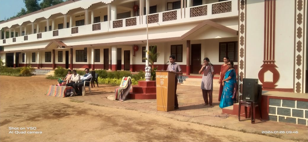 In his introductory speech, the Student Prefect Leader (SPL) of the High School, Mr. Karthick, aptly emphasized the significance of Republic Day as a national festival that celebrates the mosaic of cultures and traditions encapsulated within the Indian ethos.