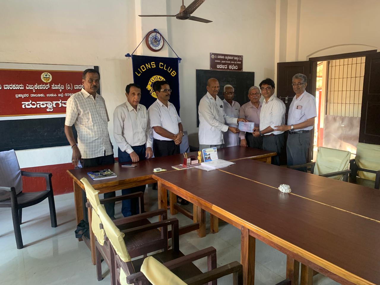 Ln. Praveen Kumar Shetty, President of the Lions Club of Barkur, and Jaikishan Shetty, representing the Champady family, presented the cheque to the Education Society. Several members of the Lions Club of Barkur were also in attendance at the event.