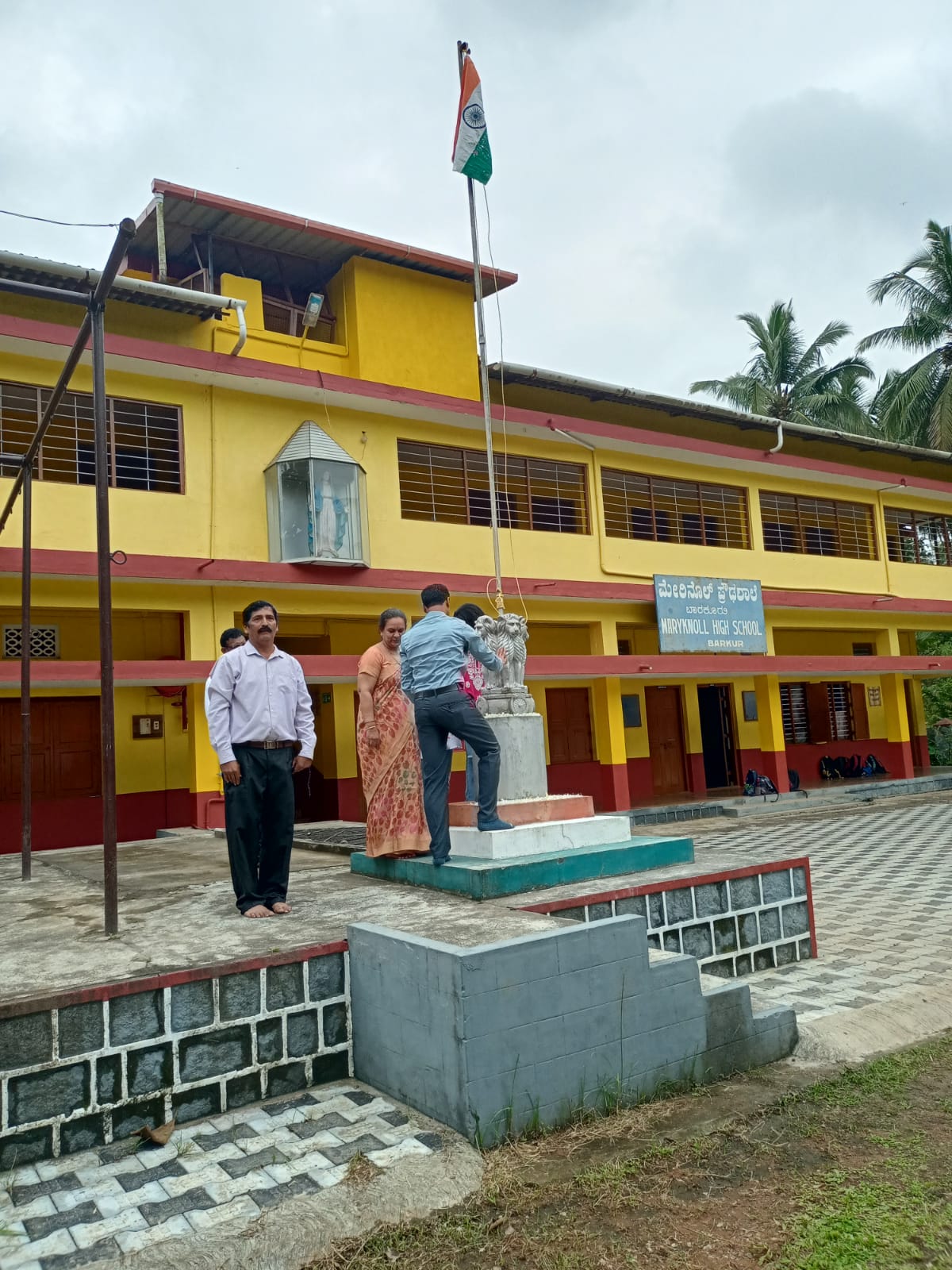 Barkur, 15/08/2024: The 78th Independence Day was celebrated with great fervor at Maryknoll High School in Barkur, beginning at 9:00 AM. The event commenced with the hoisting of the national flag by an alumnus, Michael Noel Pinto. In his address, Pinto emphasized the importance of progress, stating, "Change is the law of nature. Change should happen towards progress."