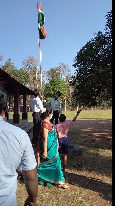 In the absence of Rev. Fr. Philip Neri Aranha, the Correspondent and Parish Priest of St. Peter Church Barkur, on health ground, Prof Jude Alfred Furtado, Parent Teachers Association, now serving in SMS College, Brahmmavar as Head of the Dept of English, privileged to unfurl the national flag.