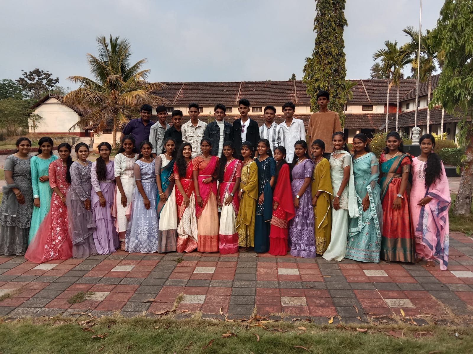 After the programme, the students enjoyed a light refreshment prepared by the Akshara Dasoha staff. Later, the Class X students gathered in front of the flag post to take photographs with their teachers. The Administrative Co-ordinator and the Correspondent joined them as well.