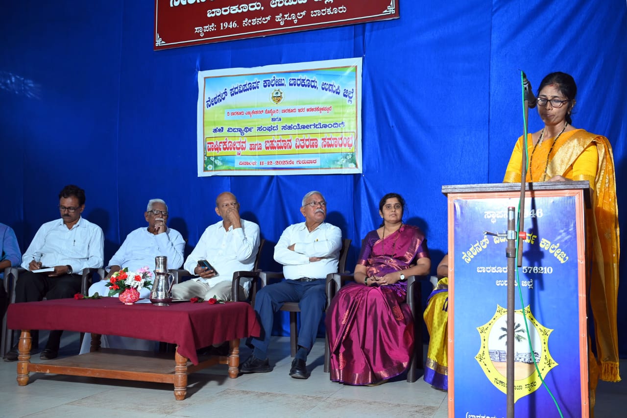 Meritorious sports achievers at Taluk, District and Zonal levels, as well as students who represented the college at the State level, were honoured with a traditional shawl, memento and garland. Mr. Umesh Shetty, Physical Education Director, was present as his students were felicitated for bringing laurels to the institution. Headmistress of National Highschool, Mrs Hemavathy PS, HM of Hanehalli Primary School Mr Uday Kumar Shetty, Mrs Jyothi Shetty Sr teacher and Treasurer of NHS Old Students Association also graced the occasion.