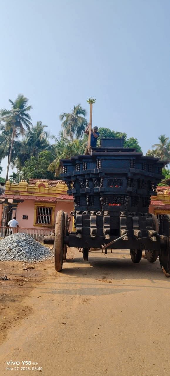 At precisely 8:00 AM, on 27/03/2025, the temple's administrative board and devotees ceremoniously brought out the temple Ratha (chariot) from its storage area. The event was marked by significant local community involvement and support.