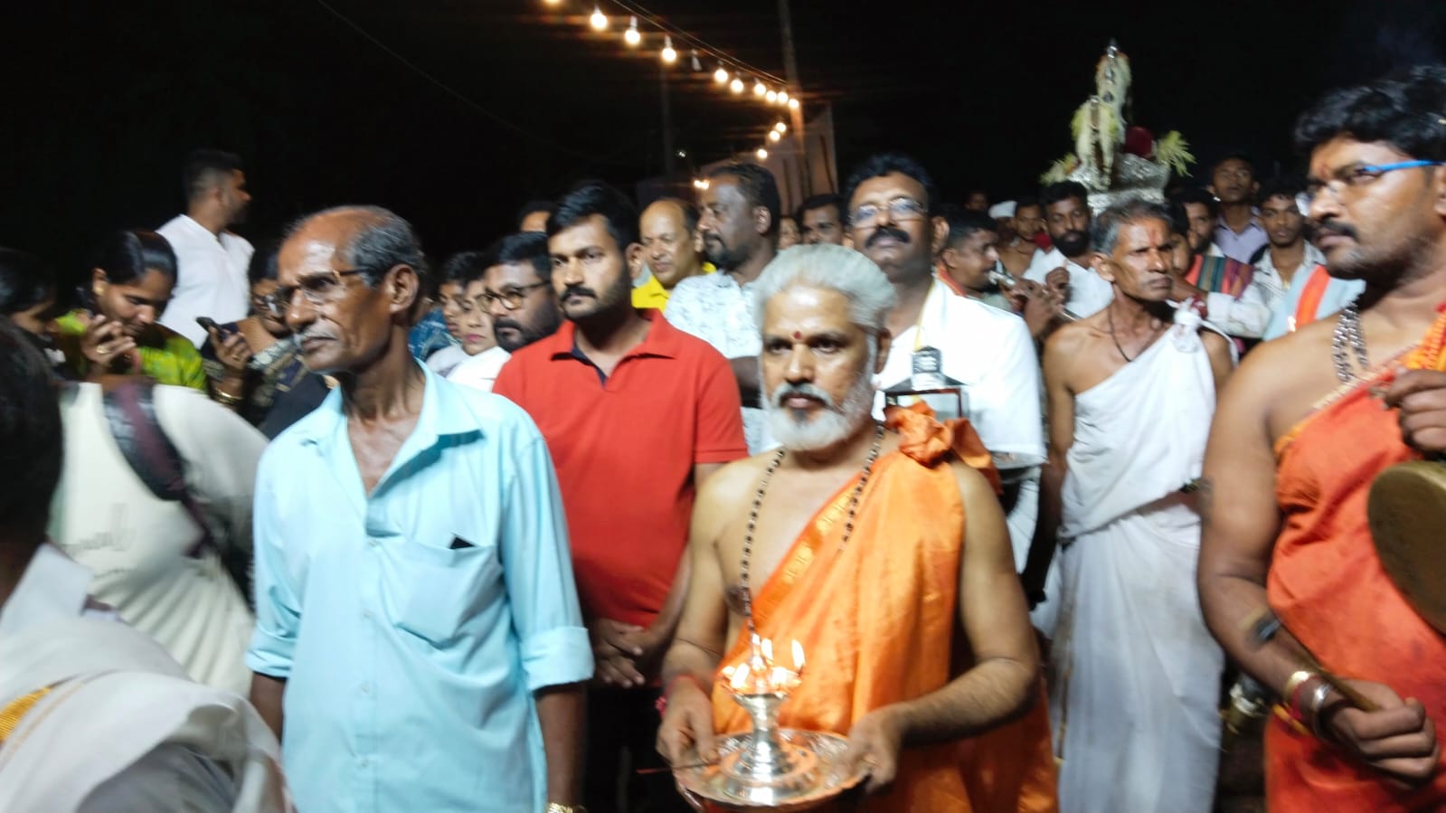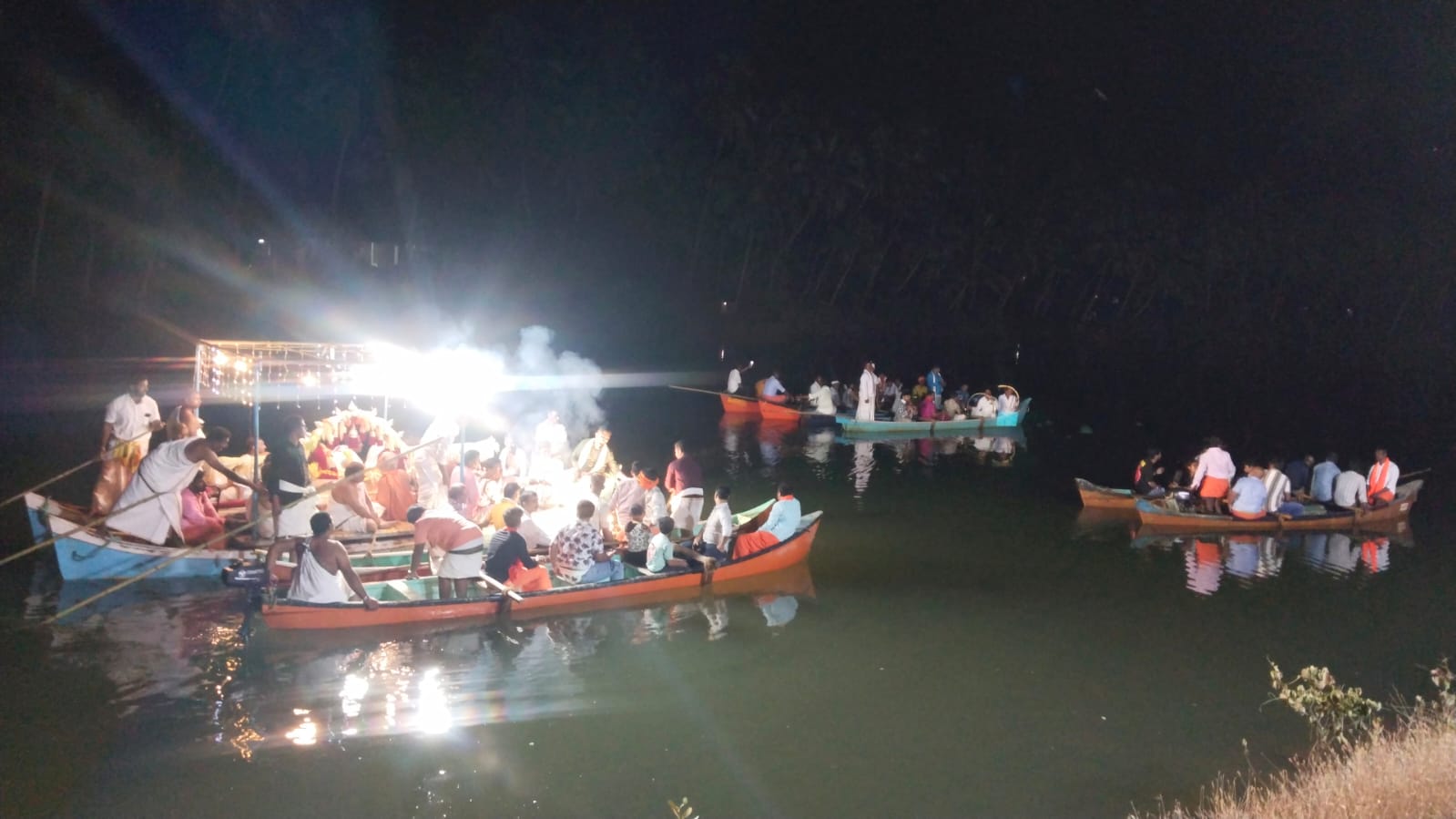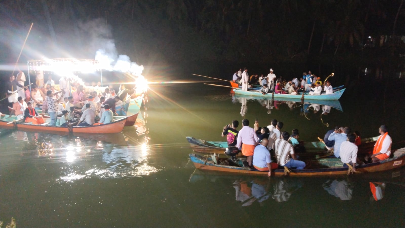 Thousands of devotees gathered to participate in the Holeyaana (River  procession), which traversed a 5-kilometer route through the River around Benne Kudru Island.  The procession made its way in a circumambulatory path around the island in specially decorated boats, culminating at the sacred presence of Sri Kula Mahastri Amma. There, the palanquin was carried around the temple sanctum nine times, symbolizing deep reverence and devotion.