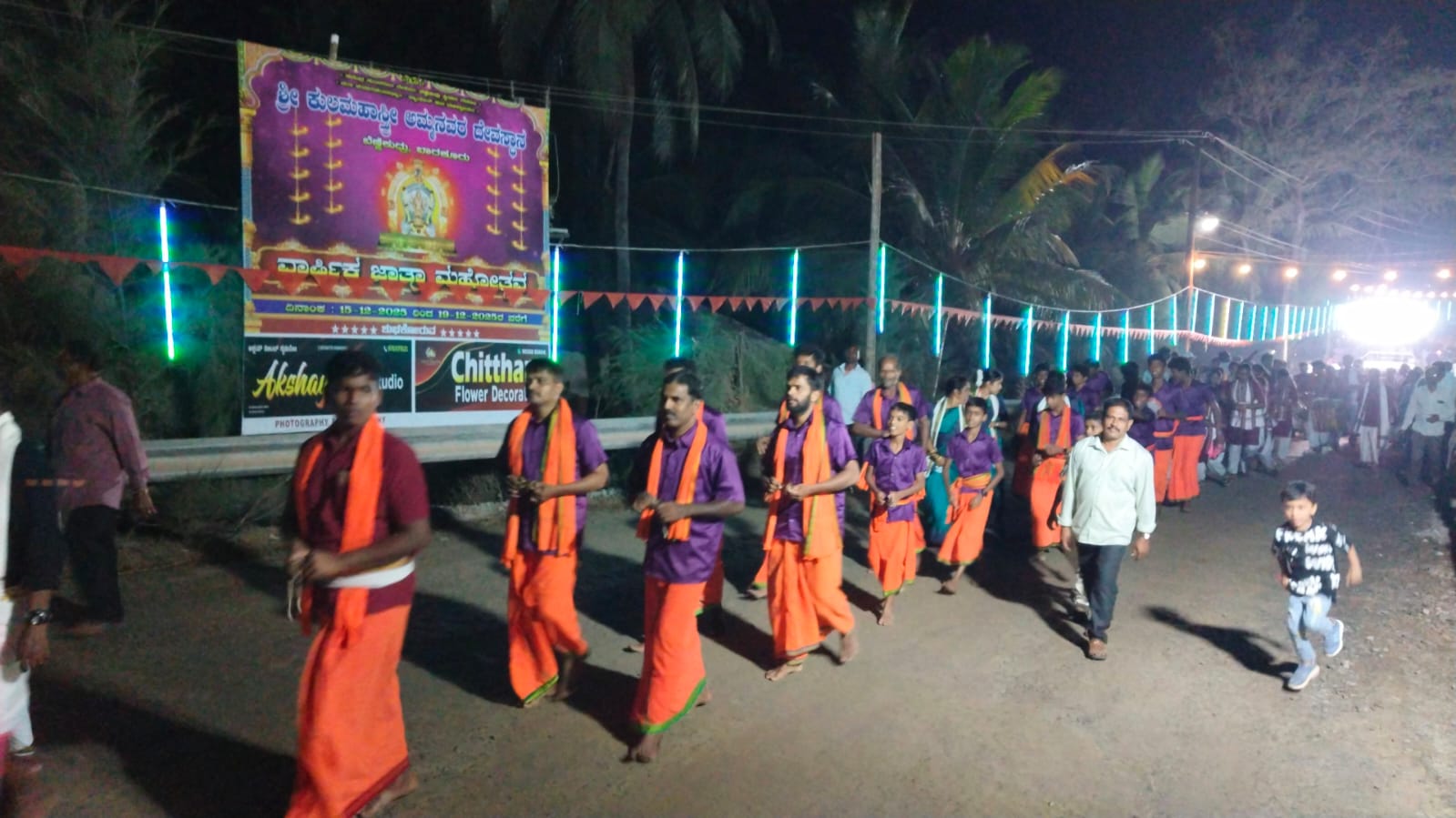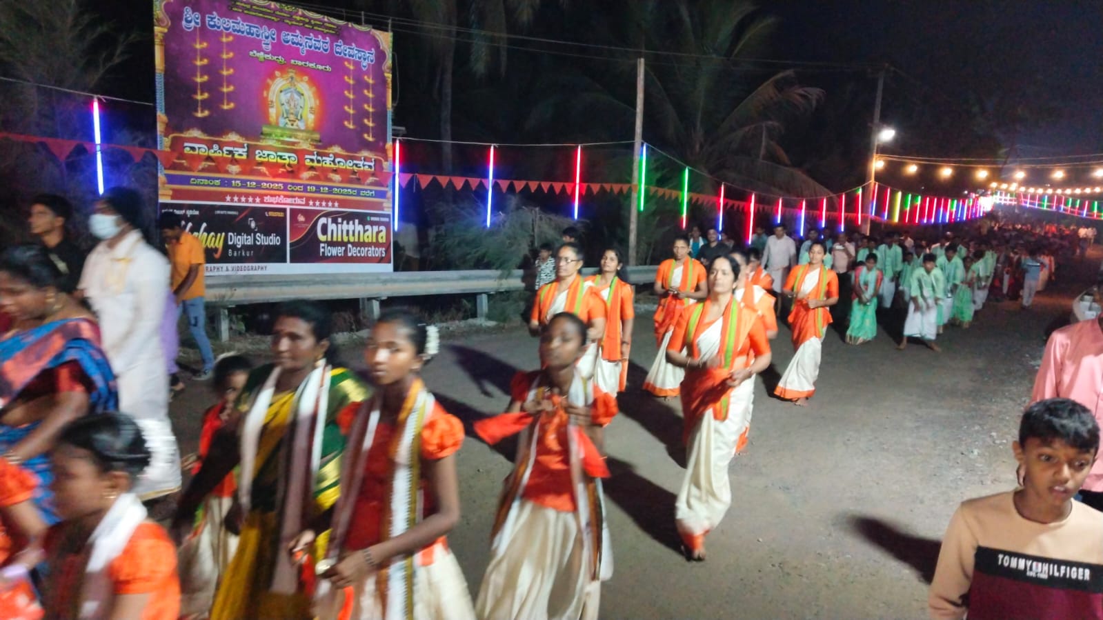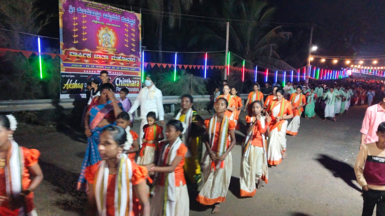 Thousands of devotees gathered to participate in the Holeyaana (River  procession), which traversed a 5-kilometer route through the River around Benne Kudru Island.  The procession made its way in a circumambulatory path around the island in specially decorated boats, culminating at the sacred presence of Sri Kula Mahastri Amma. There, the palanquin was carried around the temple sanctum nine times, symbolizing deep reverence and devotion.
